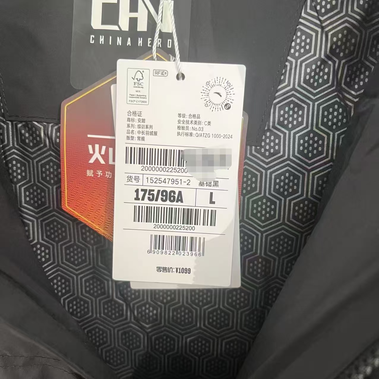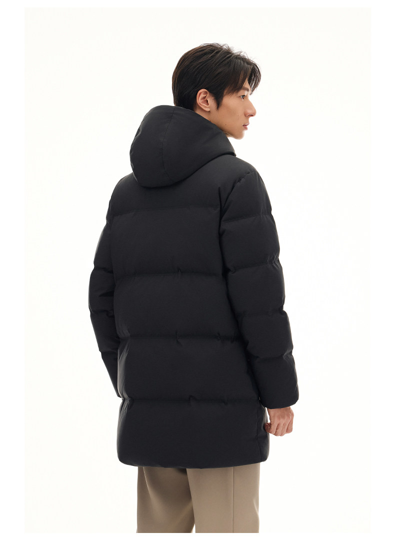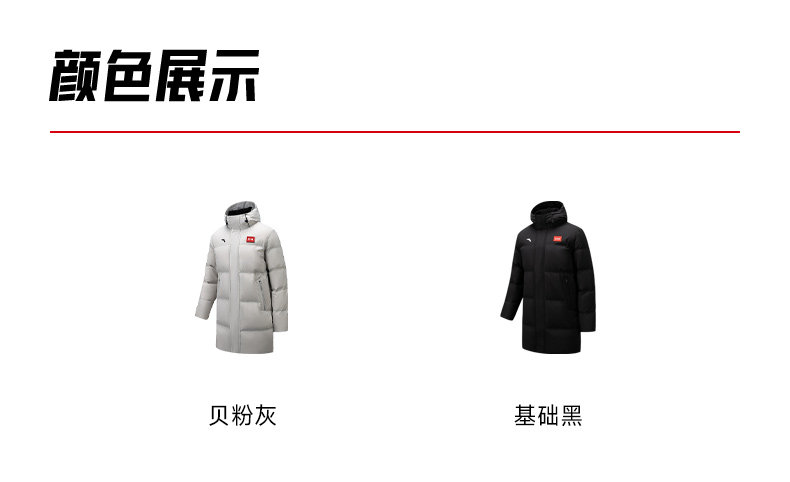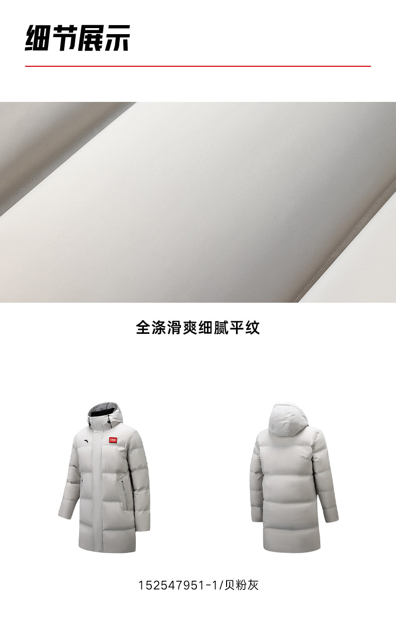 安踏正品综训男中长羽绒服2025冬新款防泼水连帽羽绒服152547951