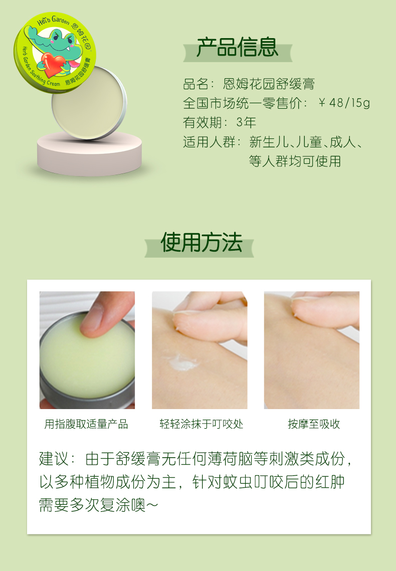 恩姆花园舒缓膏婴儿新生儿宝宝蚊子咬非紫草膏蚊虫叮咬儿童魔法膏