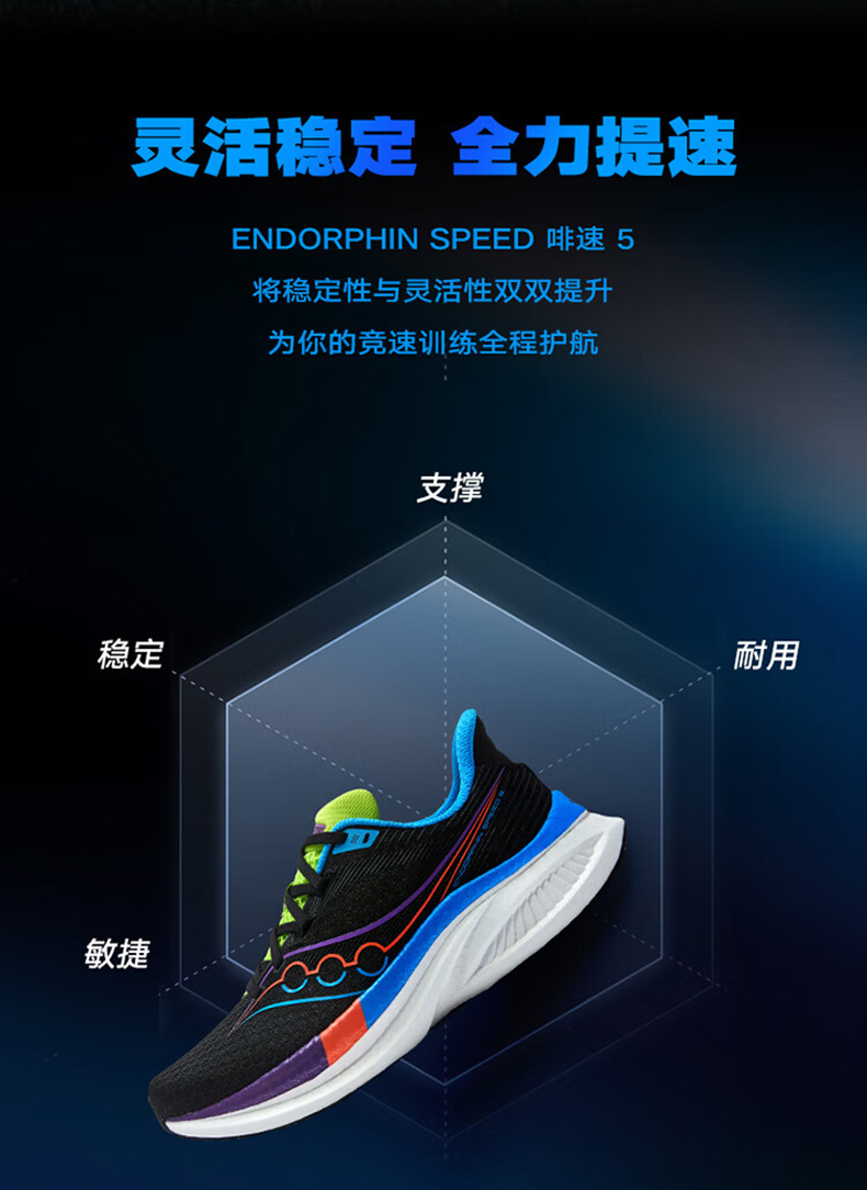 Saucony索康尼 啡速5男女款轻便缓震透气舒适回弹全能竞速运动跑步鞋