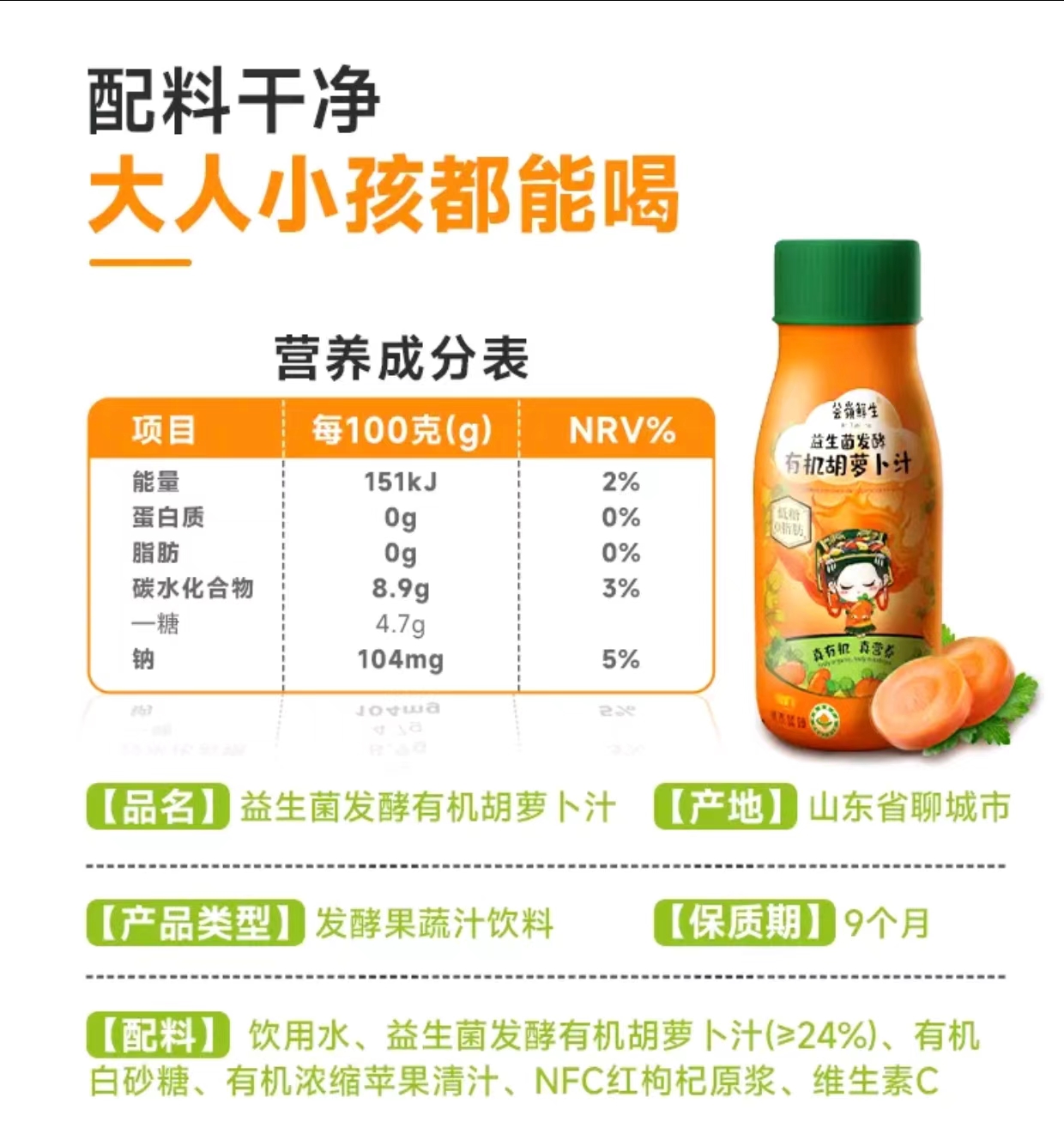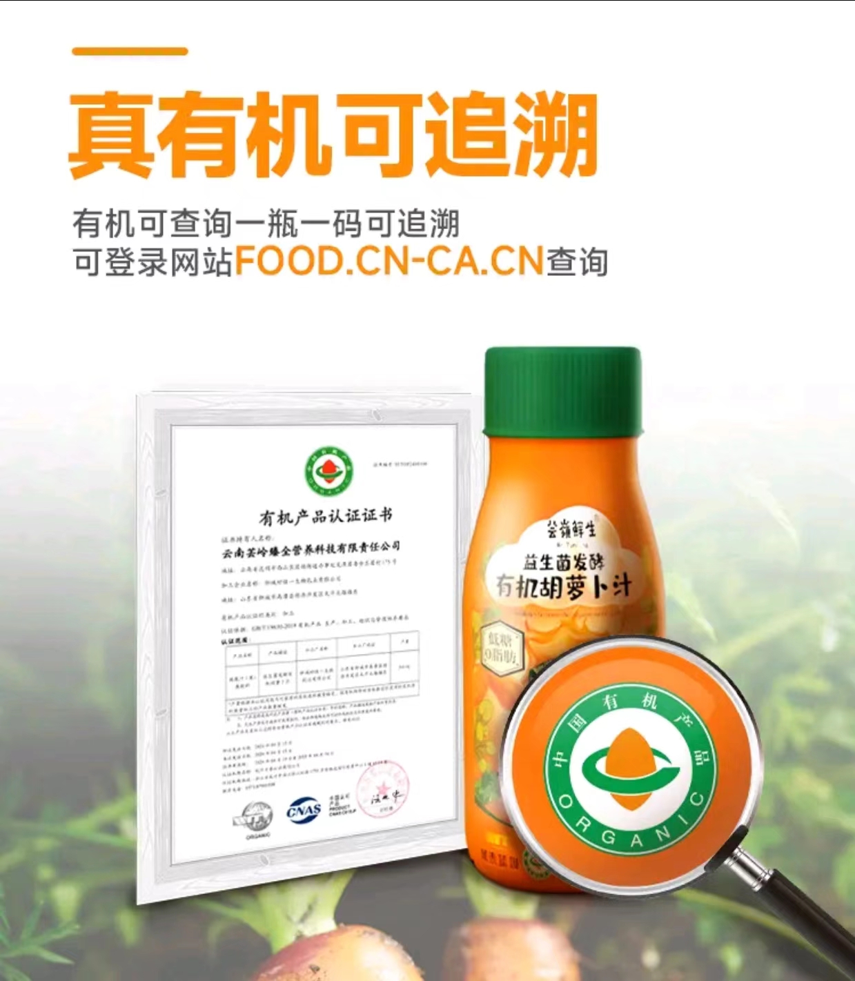 芸岭益生菌发酵有机胡萝卜汁(低糖)230g*10瓶