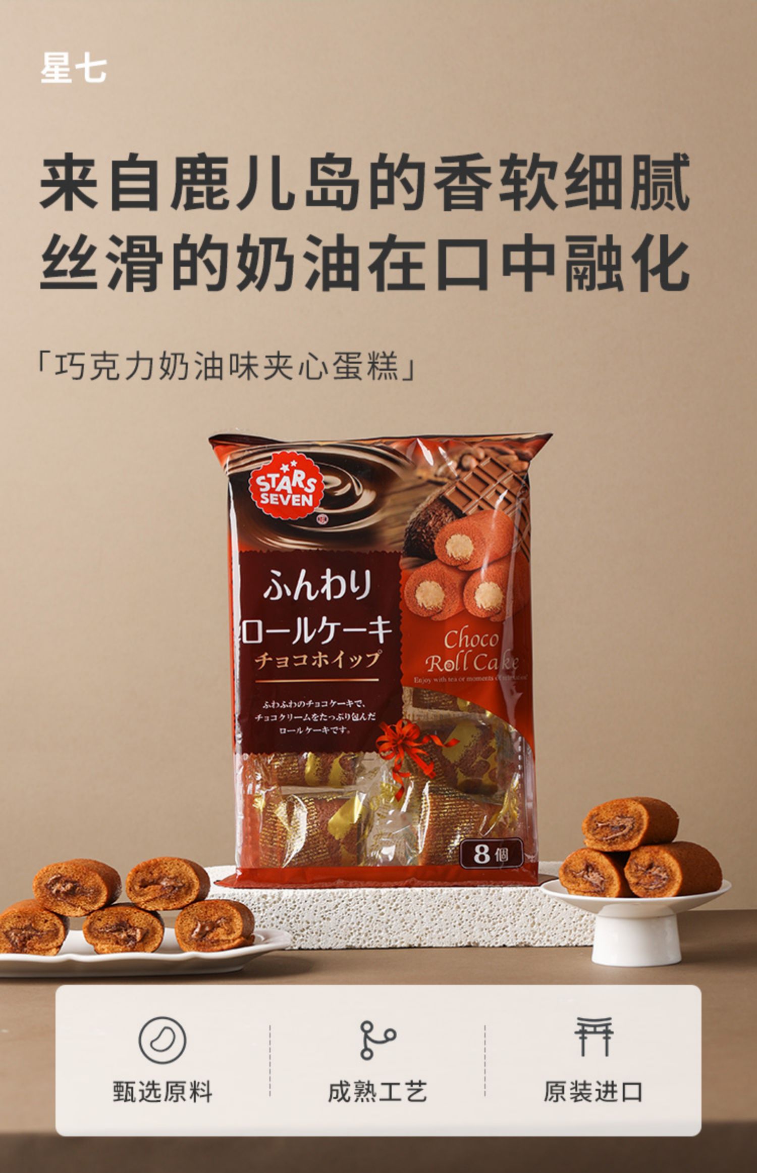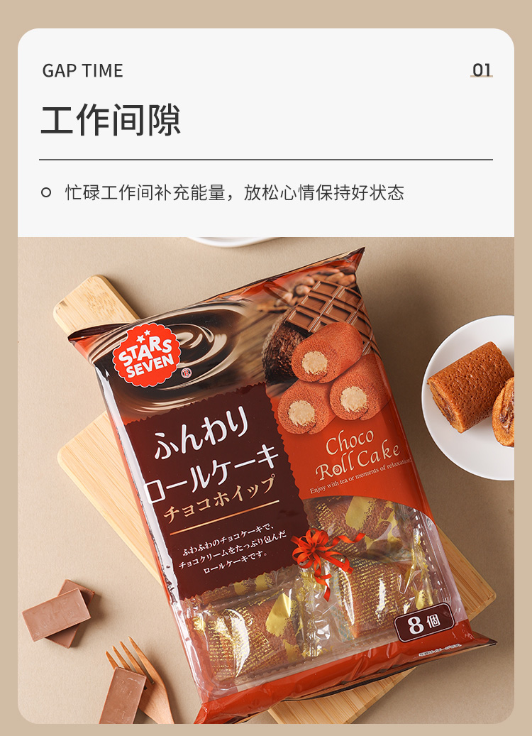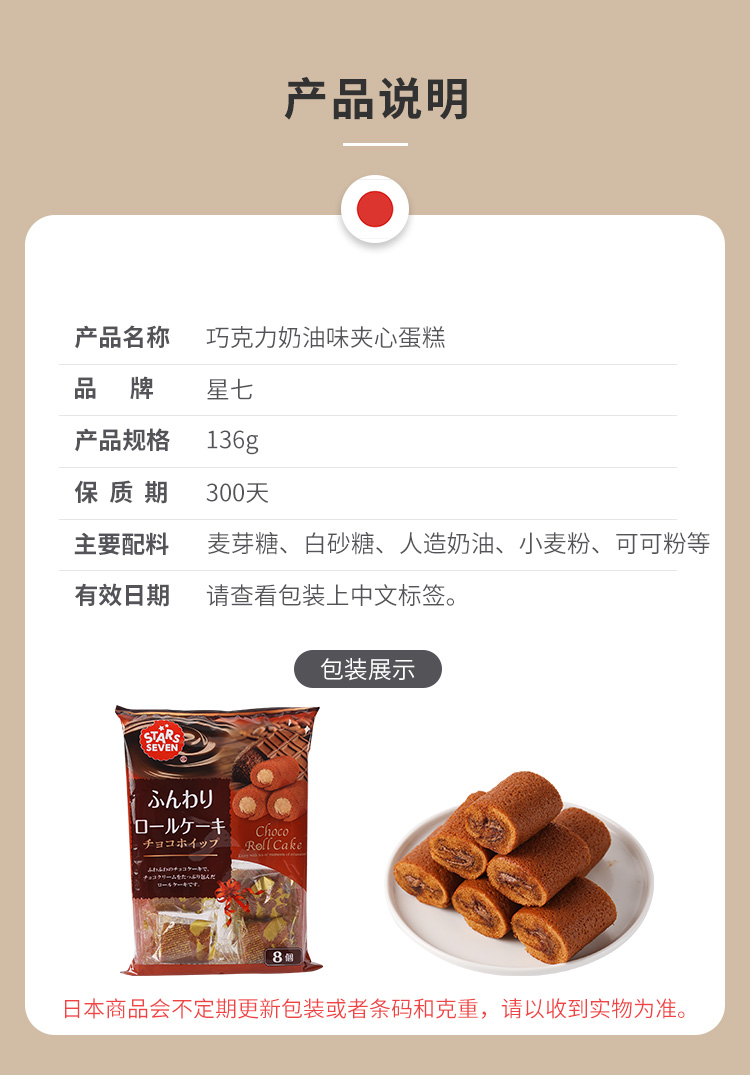 星七牌巧克力奶油味夹心蛋糕卷136g/袋