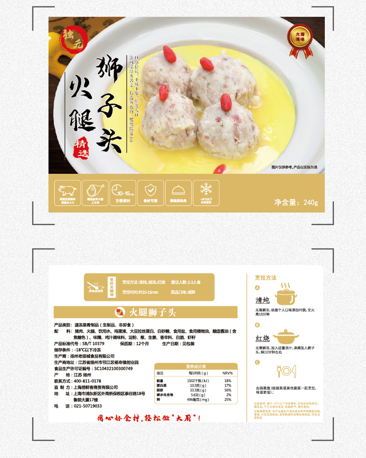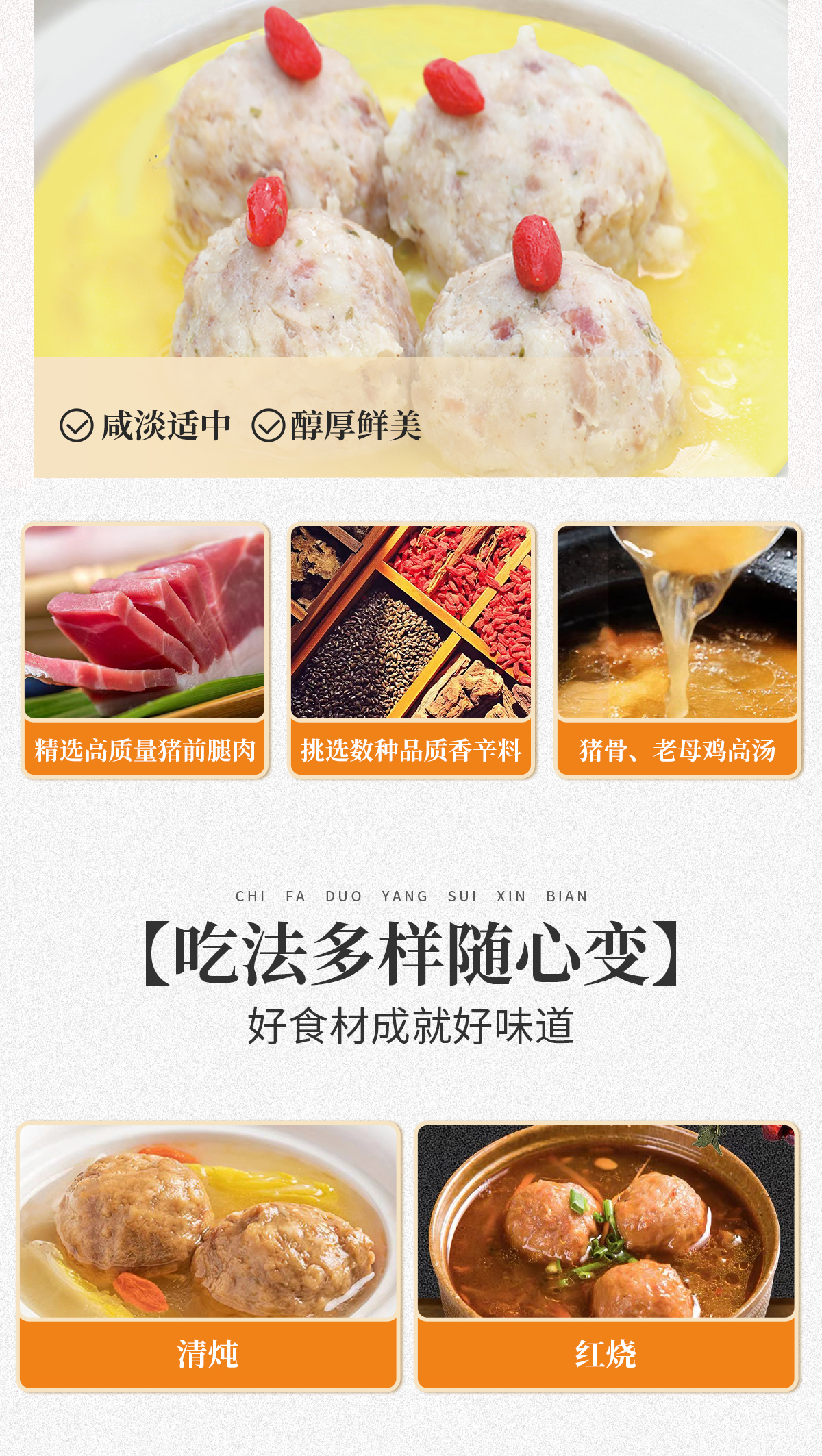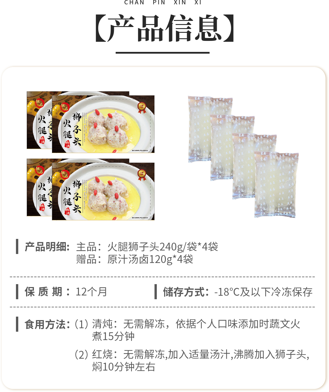 【独元】(火腿4袋)淮扬经典扬州狮子头4袋(60g*4/袋)赠卤汤4袋