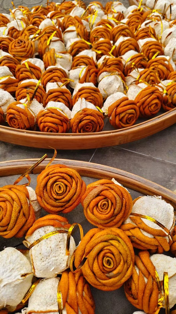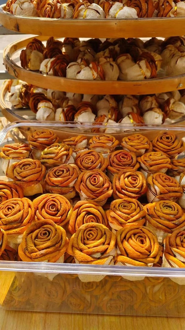 超惊艳的新会陈皮手工折叠生晒玫瑰花👏