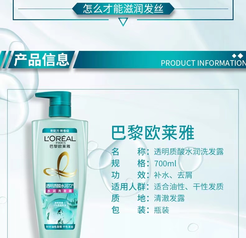 欧莱雅透明质酸洗发露700ml+润发乳400ml