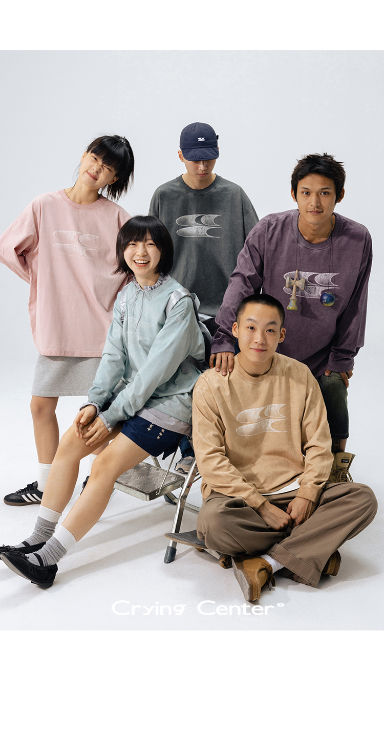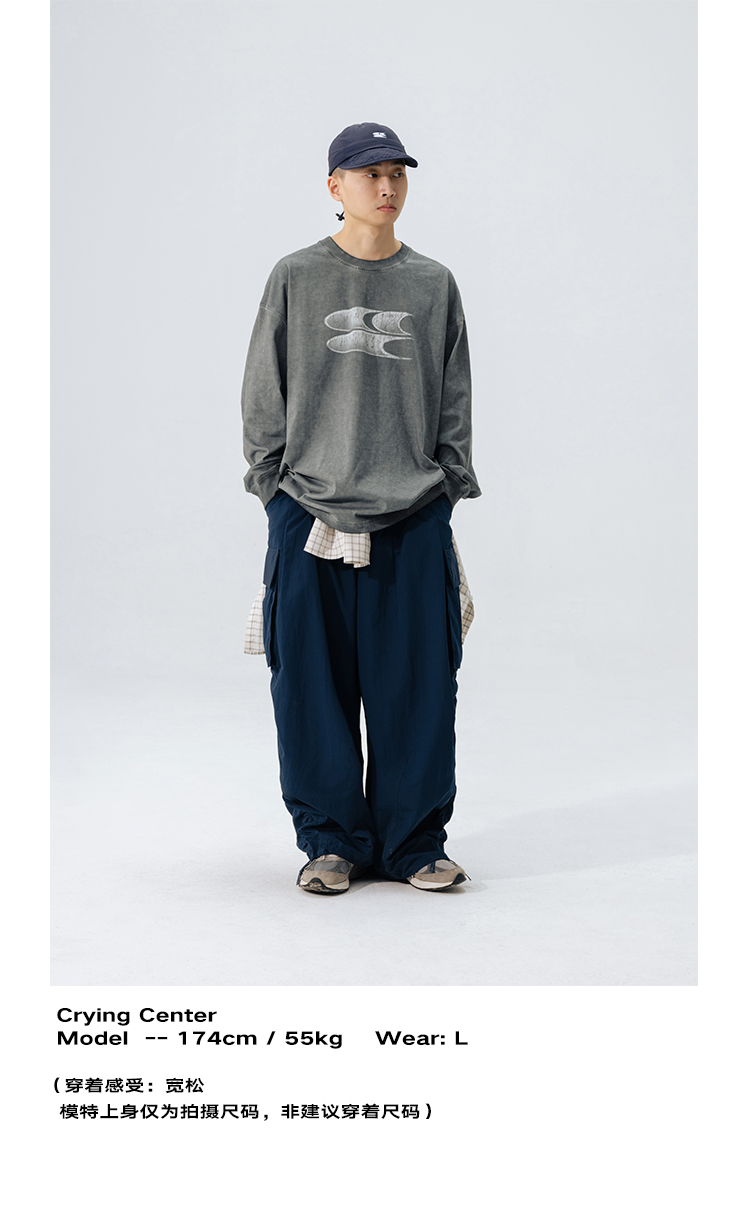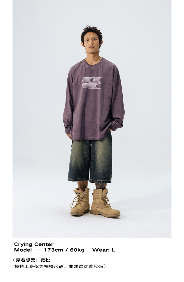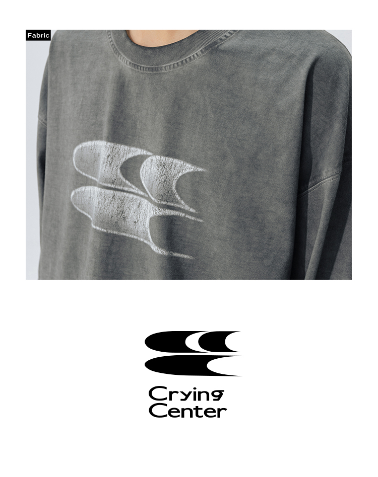 CryingCenter水洗做旧褪色logo上衣圆领宽松情侣长袖T恤哭喊中心