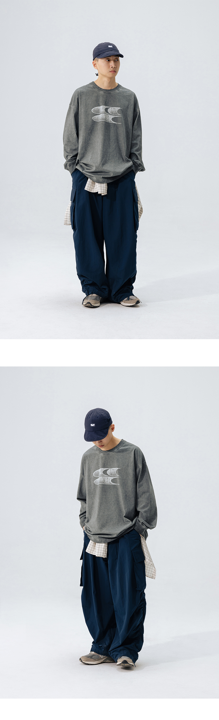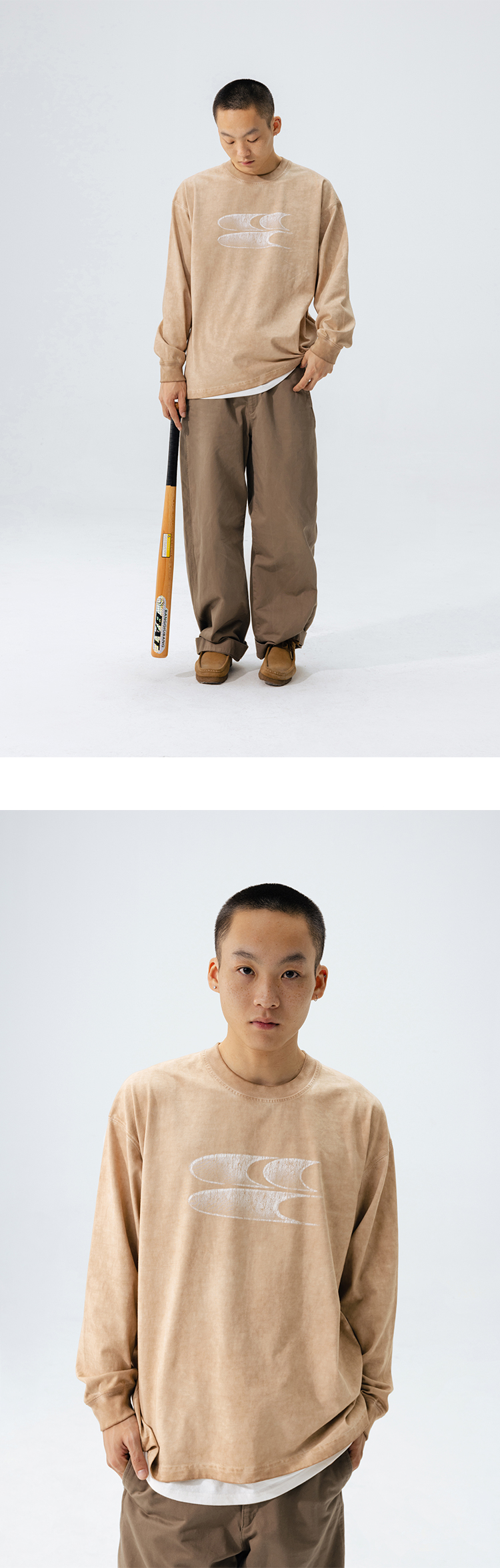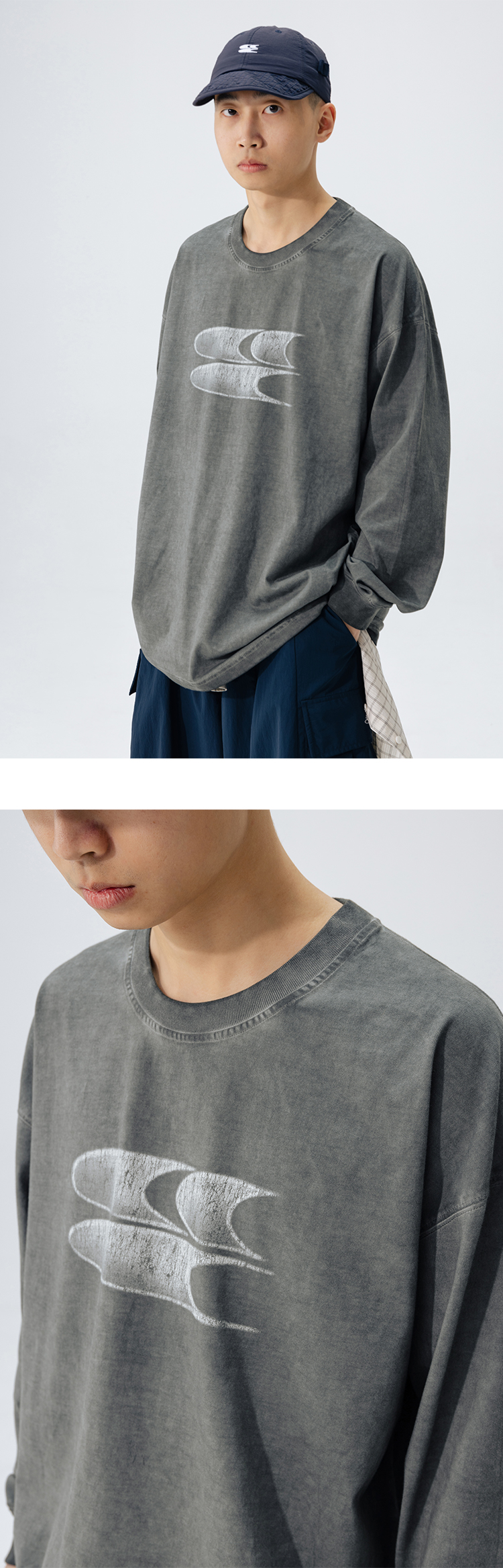 CryingCenter水洗做旧褪色logo上衣圆领宽松情侣长袖T恤哭喊中心