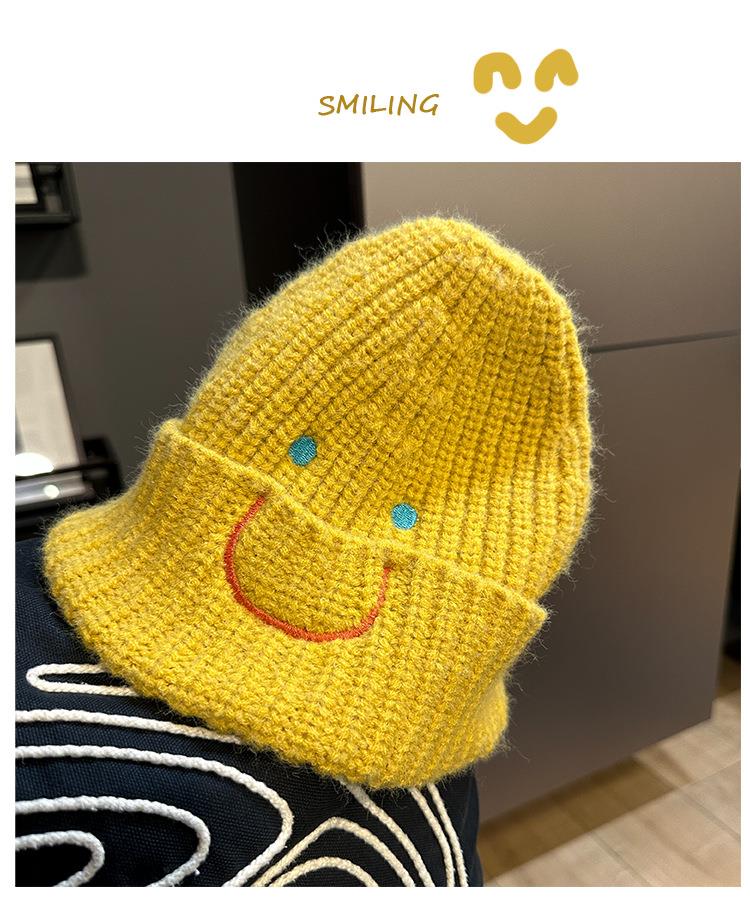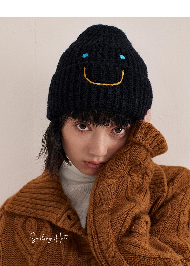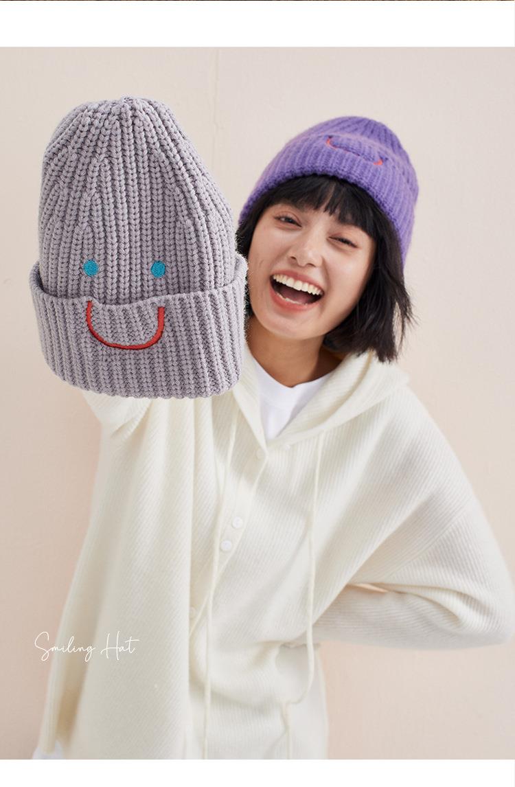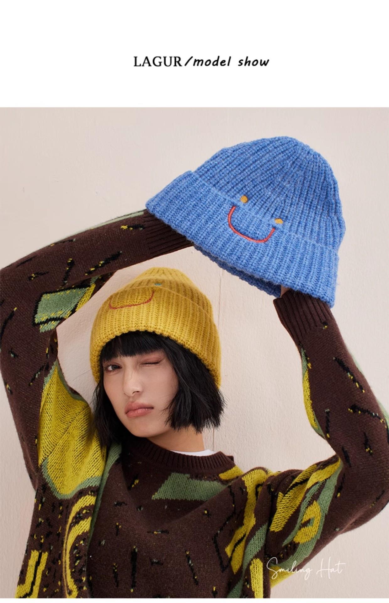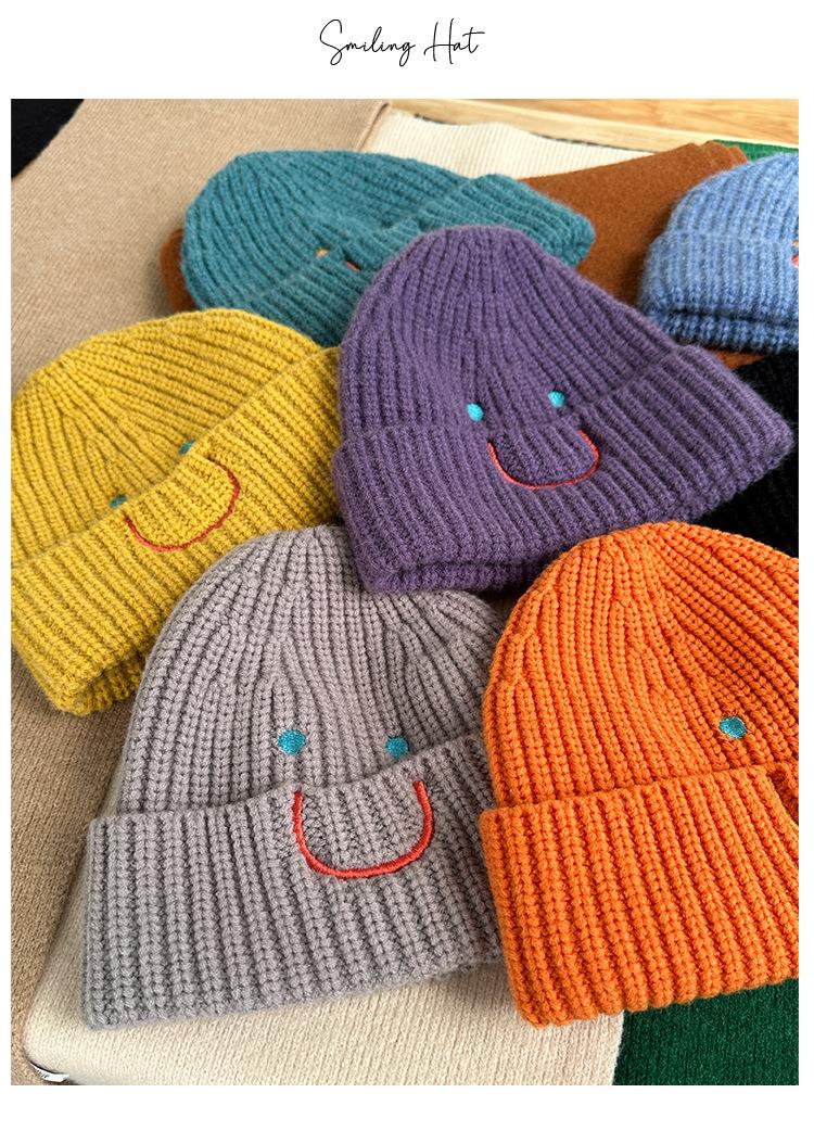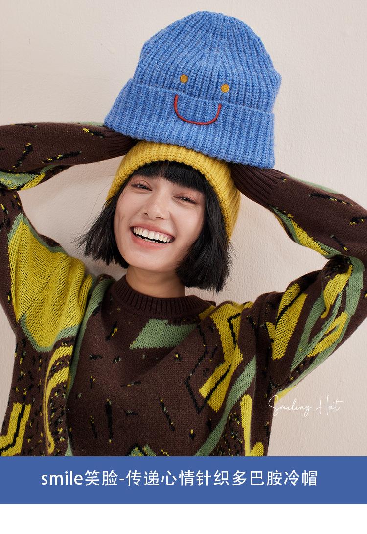 【北美笑脸针织帽!传递心情多巴胺色】系加厚女男冷帽冬护耳包头网红