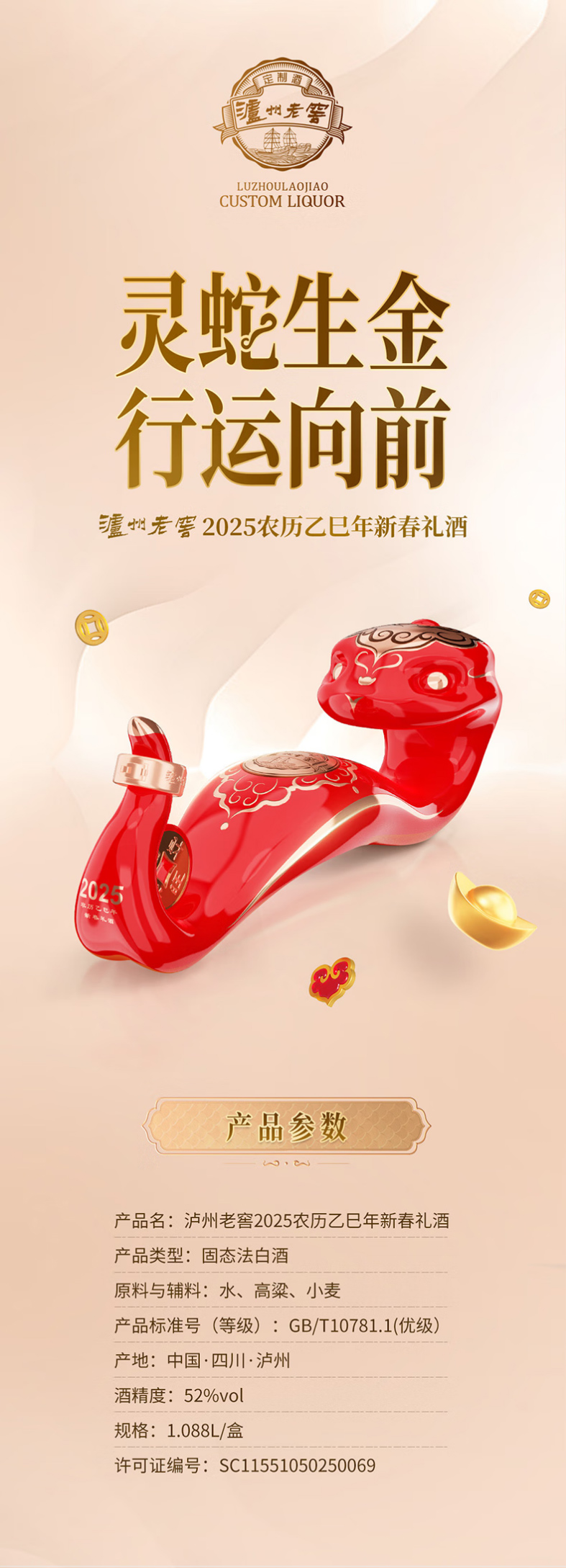 【灵蛇生金】泸州老窖 乙巳蛇年 浓香型 52度 1088ml