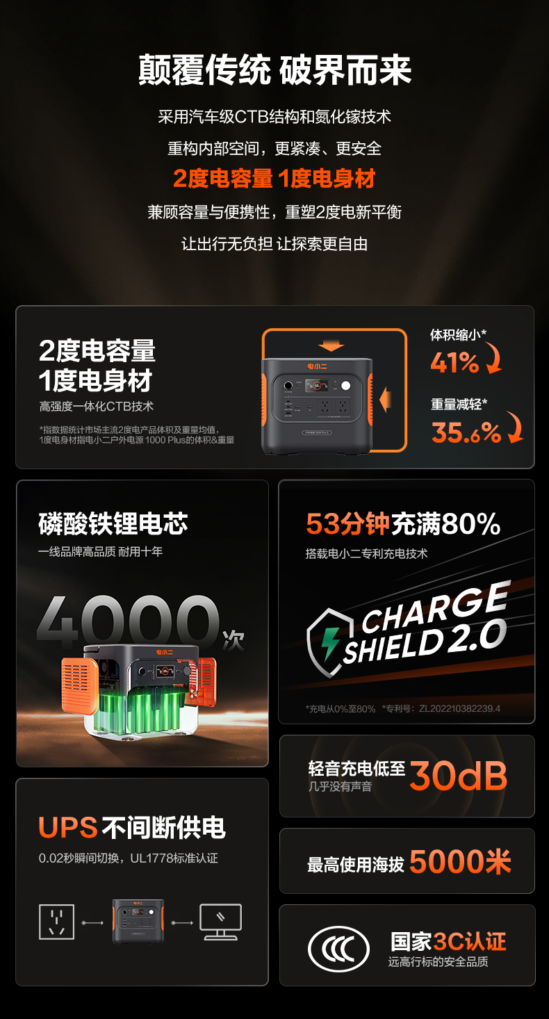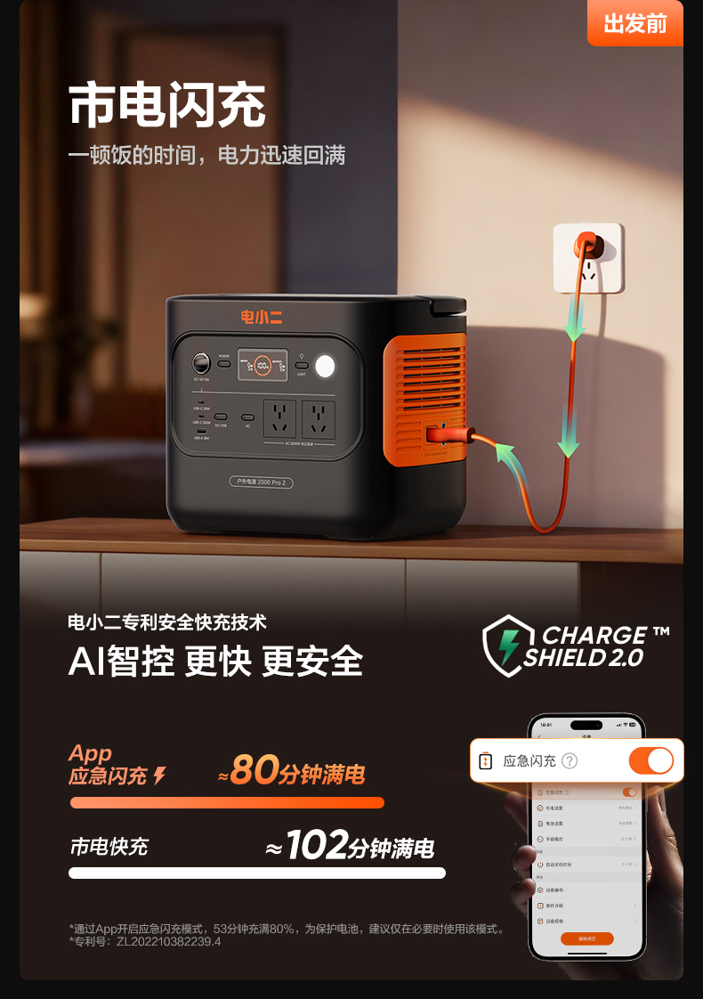 - 电小二户外电源是光充户外电源领导品牌,便携储能行业起草单位之一,致力于提供可持续便携绿色能源解决方案。