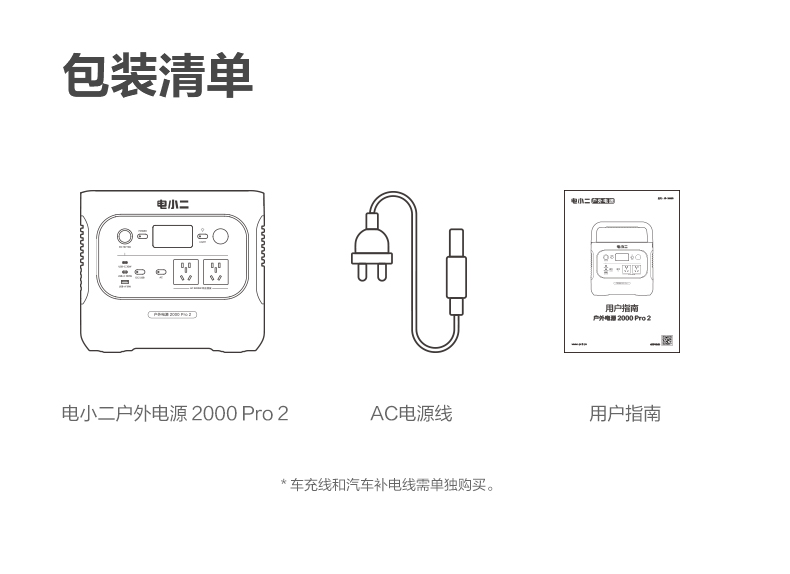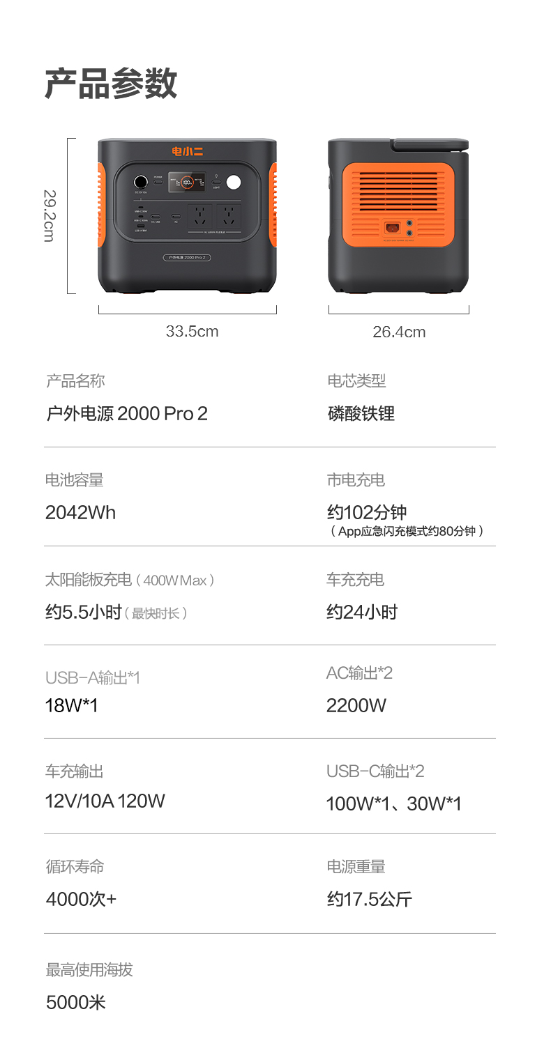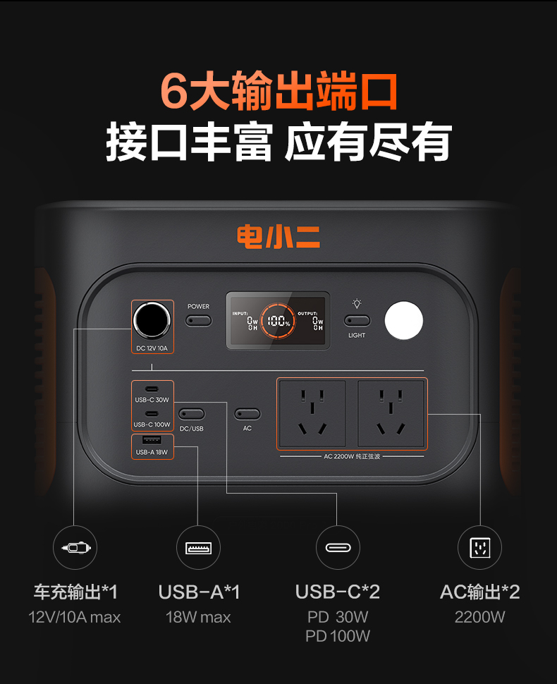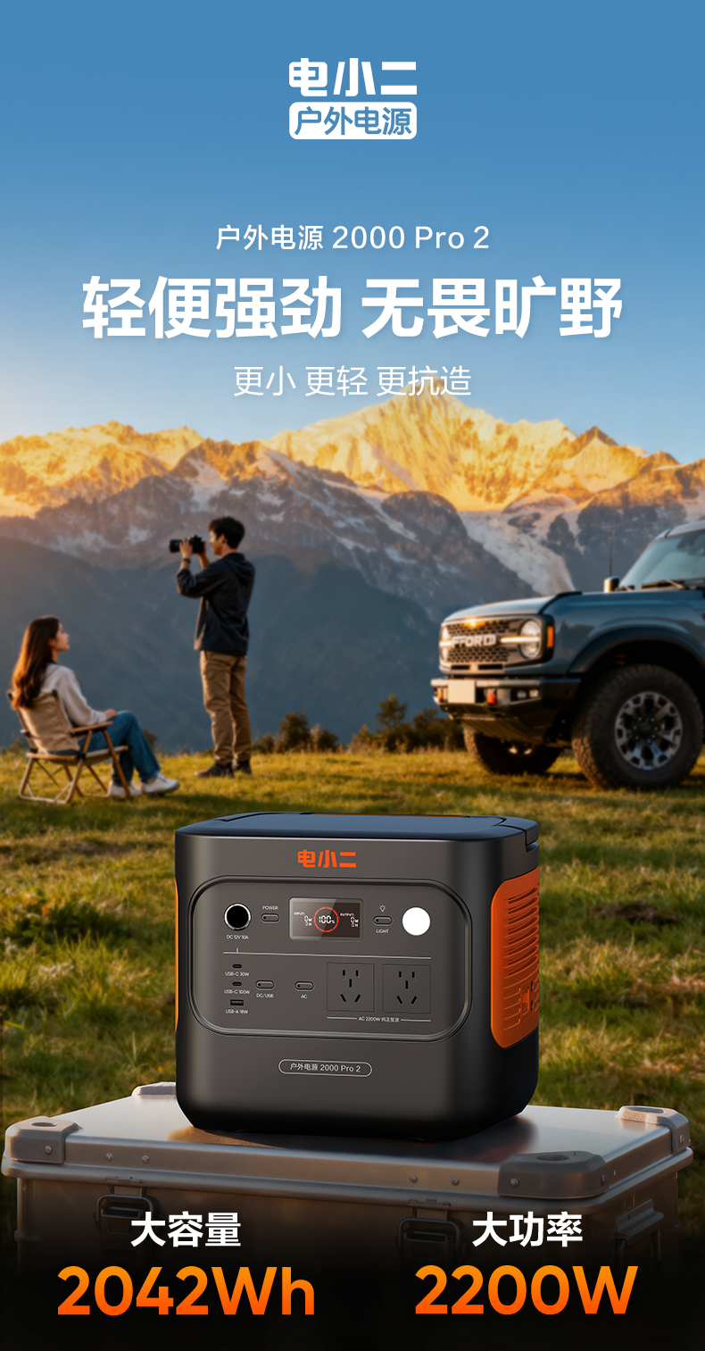 【新品上市爆款推荐】电小二户外电源2000 Pro2 大功率2200W移动220v便携式2度电蓄电池家用储能大容量停电应急备用自驾车载露营电瓶摆摊夜市