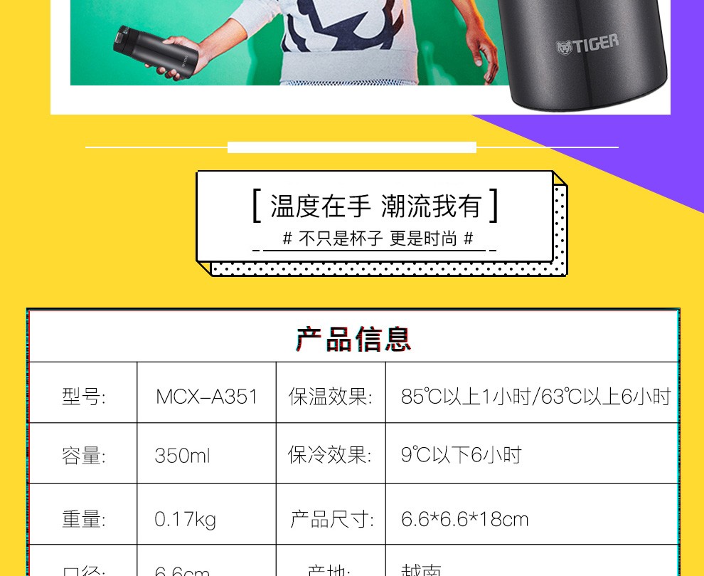 虎牌(TIGER) 保温杯 不锈钢双层真空保温 350ML MCX-A351