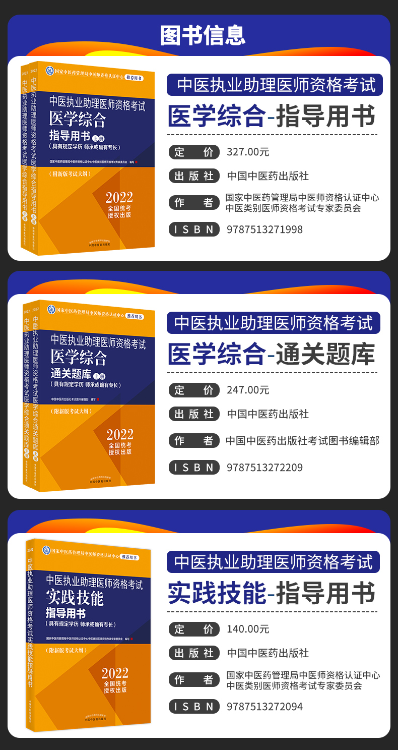 2022年中医执业助理医师考试全套5本 助助理医学综合指导用书教材+通关题库习题集+实践技能中国中医药出版社
