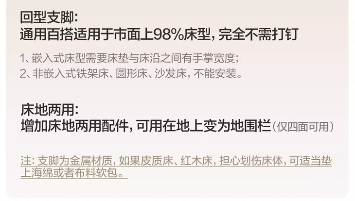 【彩虹pro床围栏-L型支脚】上横杠三节