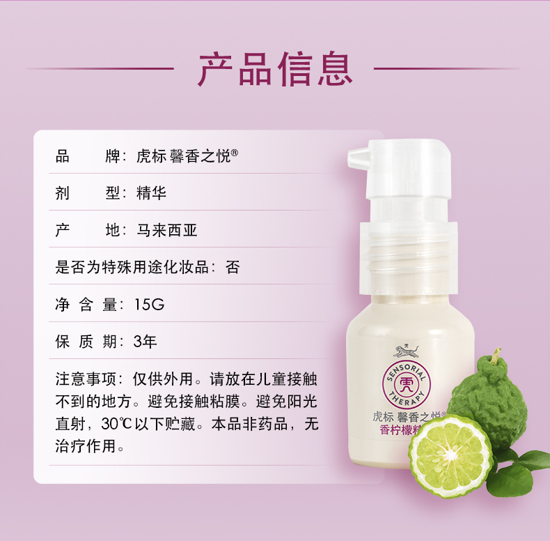 虎标 馨香之悦 香柠檬香型精华 15g/盒
