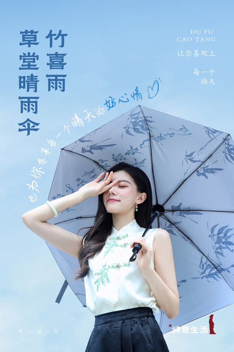 【杜甫草堂晴雨伞】文创雨伞两用防紫外线太阳伞中式诗词印花