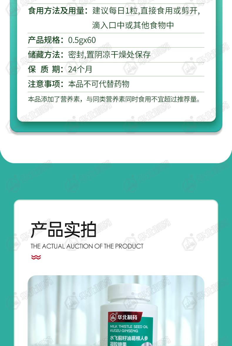 严选 | 华北制药 水飞蓟籽油葛根人参凝胶糖果(2代水飞蓟护肝片 升级款)60粒/瓶*3瓶