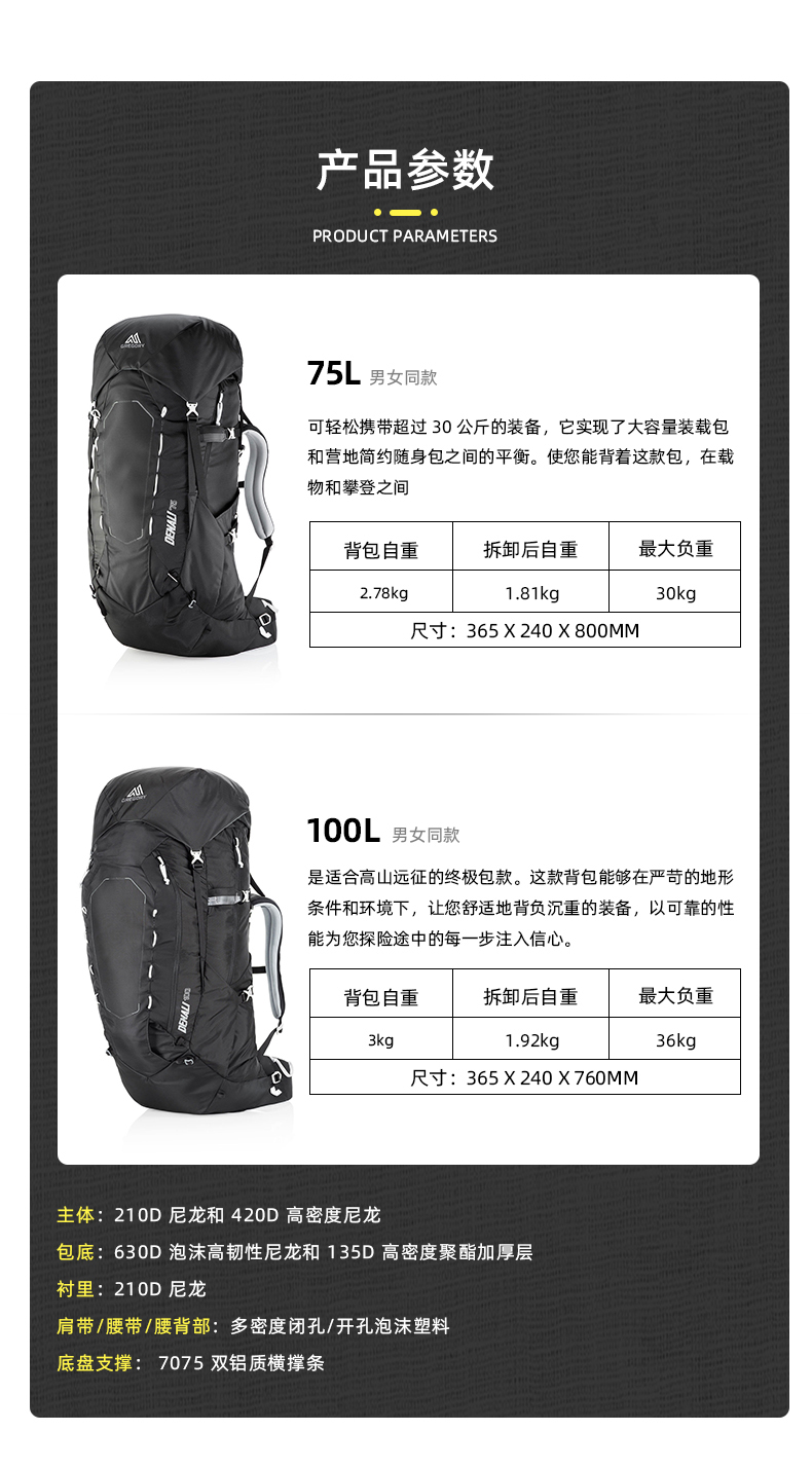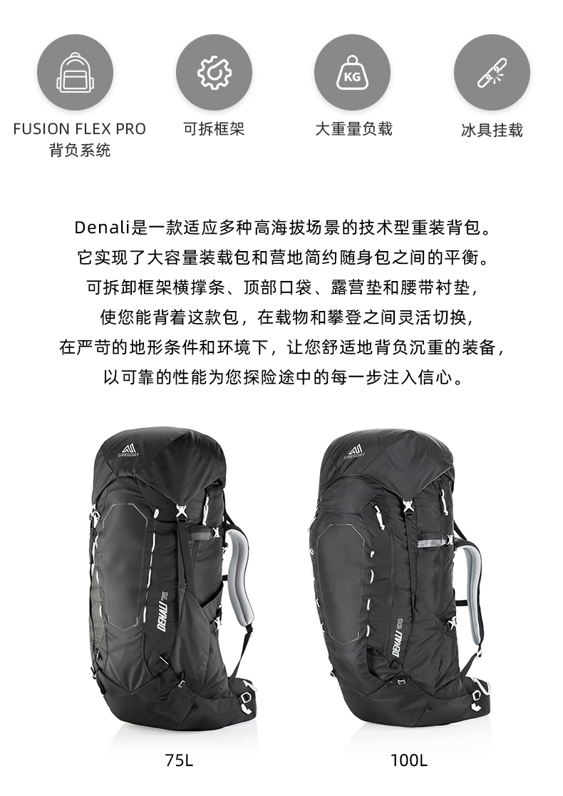 GREGORY格里高利DENALI德纳里 高海拔攀登滑雪远征徒步重装登山包