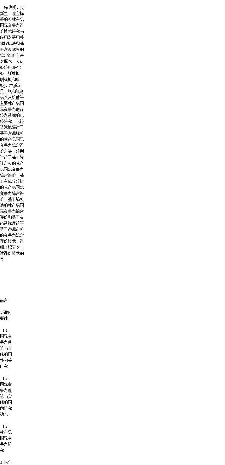 林产品国际竞争力评价技术研究与应用/林业产业发展理论文库 8602 科技