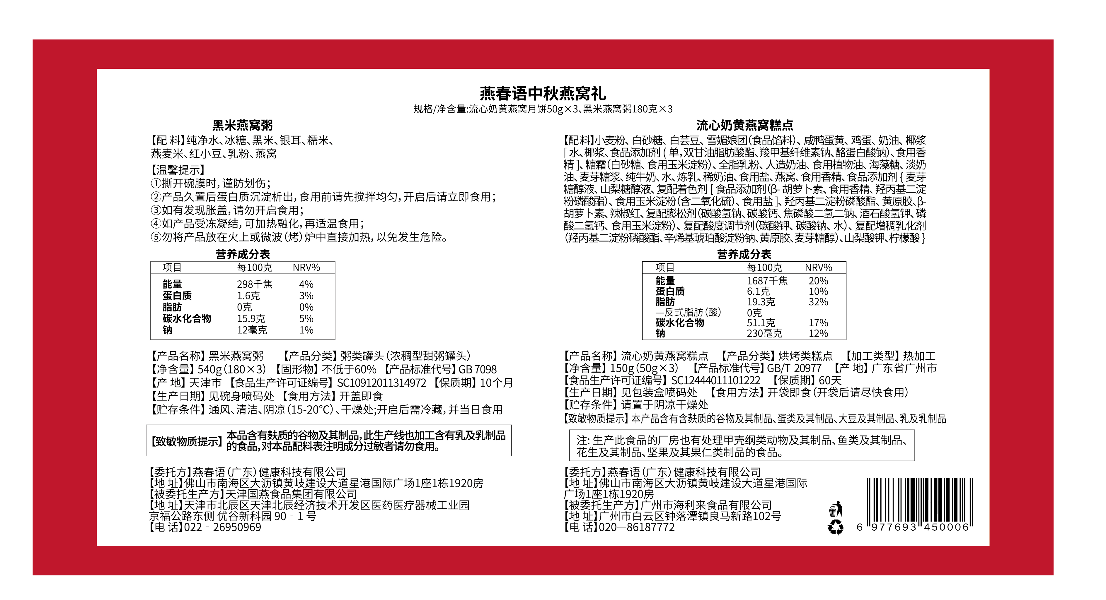 燕春语中秋流心奶黄月饼+燕窝粥礼盒装