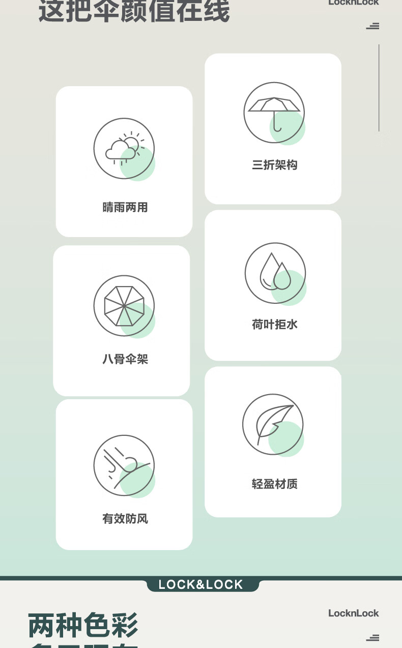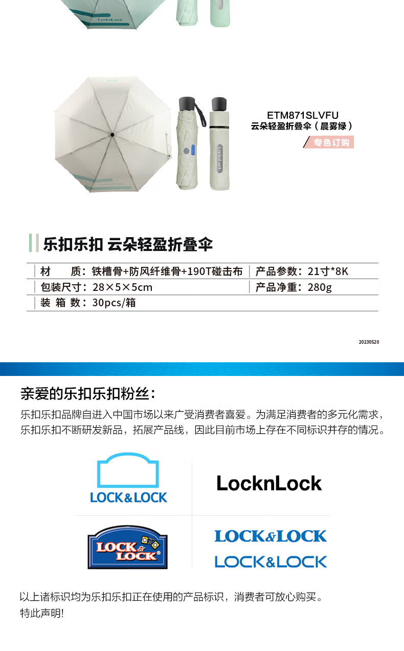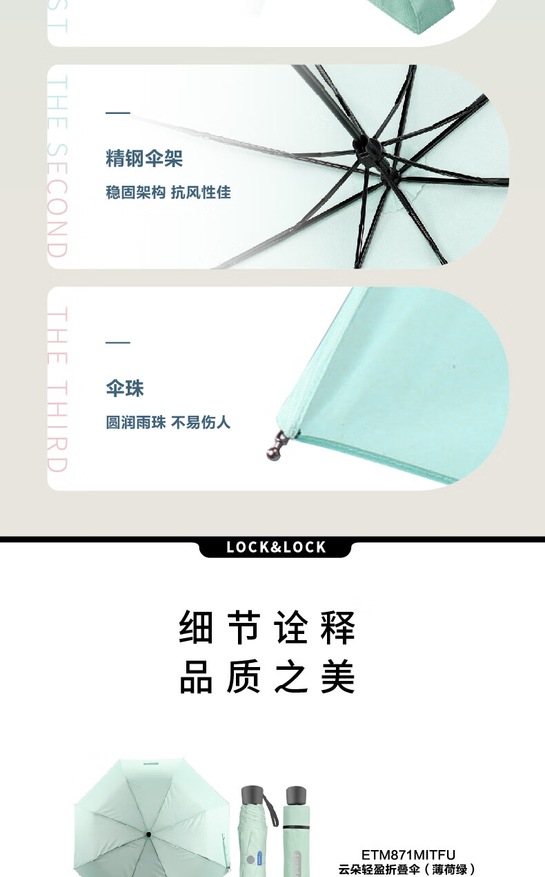 乐扣乐扣 云朵轻盈折叠伞薄荷绿21寸*8K ETM871MITFU