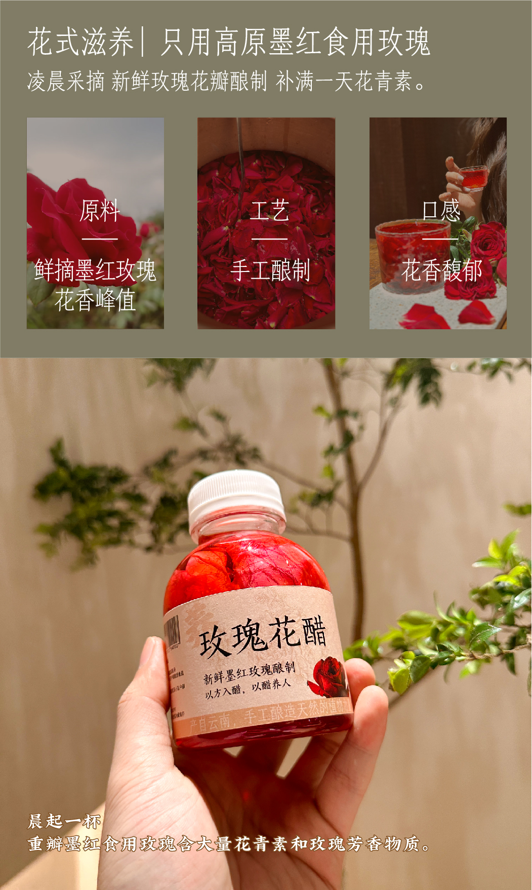 选用云南高原生长可食用墨红玫瑰,海拔1800米,强日照、昼夜温差大,是云南弥勒种出好玫瑰的关键。
