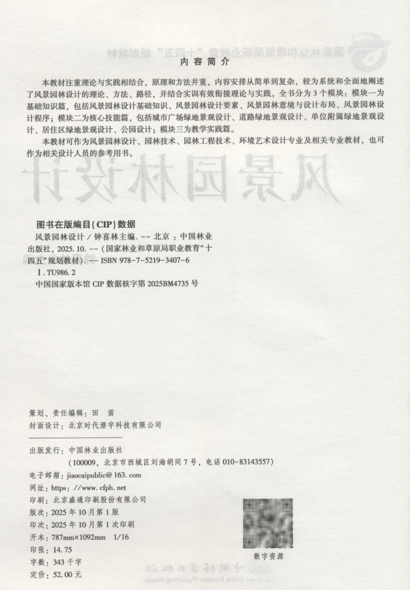 正版 风景园林设计(国家林业和草原局职业教育十四五规划教材) &3407 理论实践结合 + 系统技能覆盖,专业教学与设计参考必备~