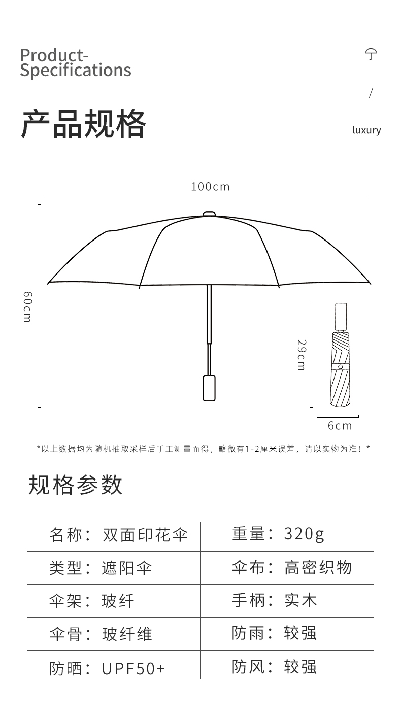 三折手开双面印花晴雨两用伞