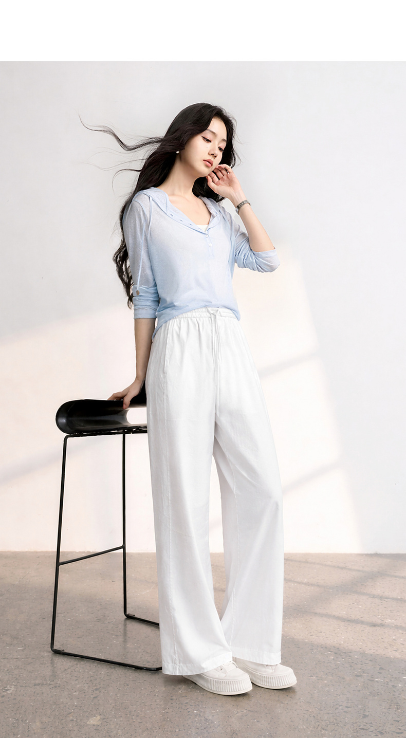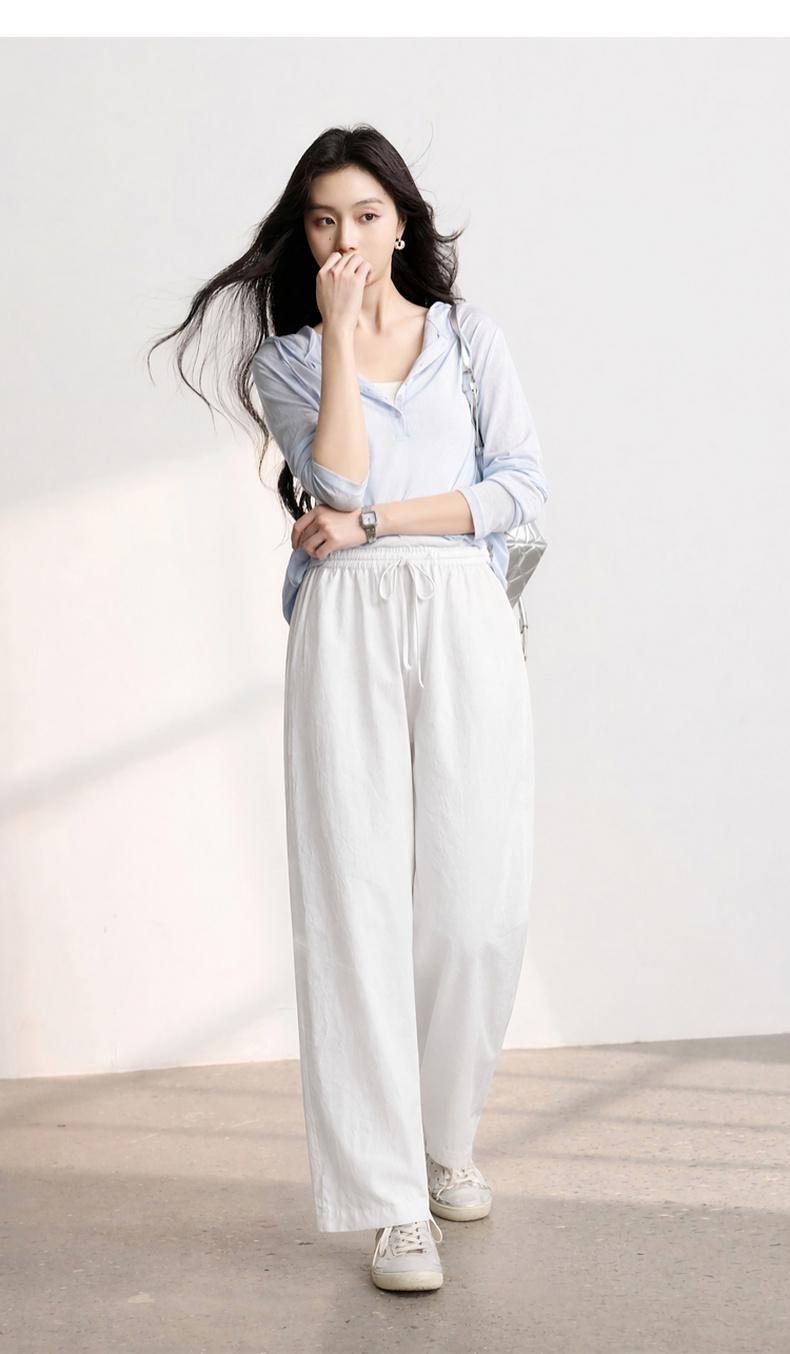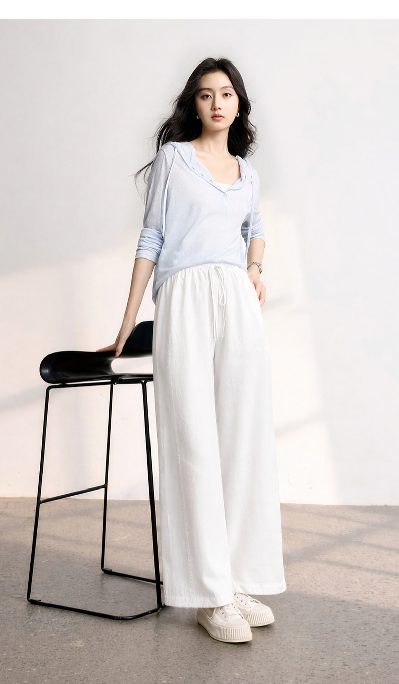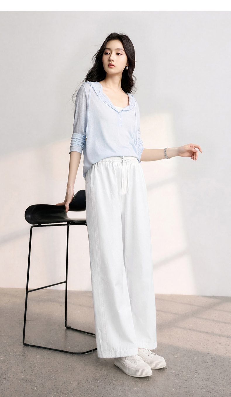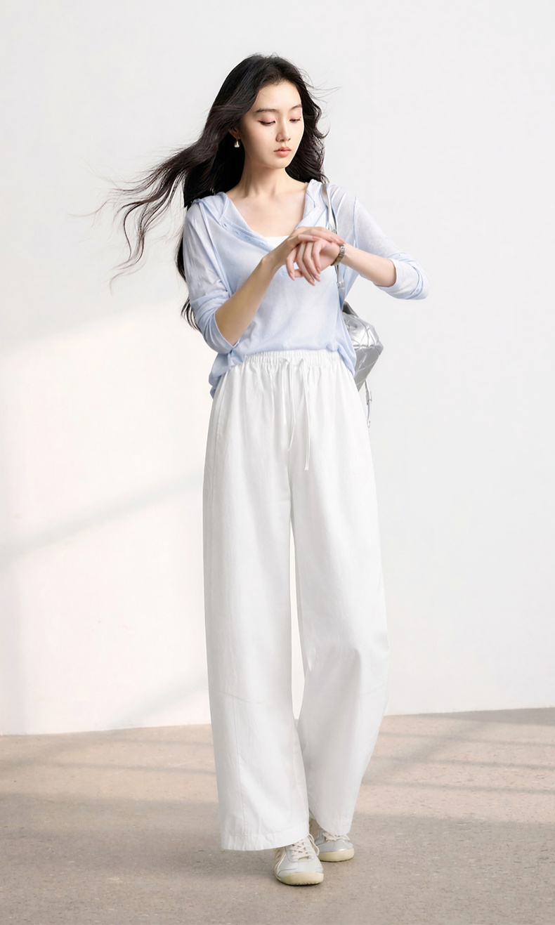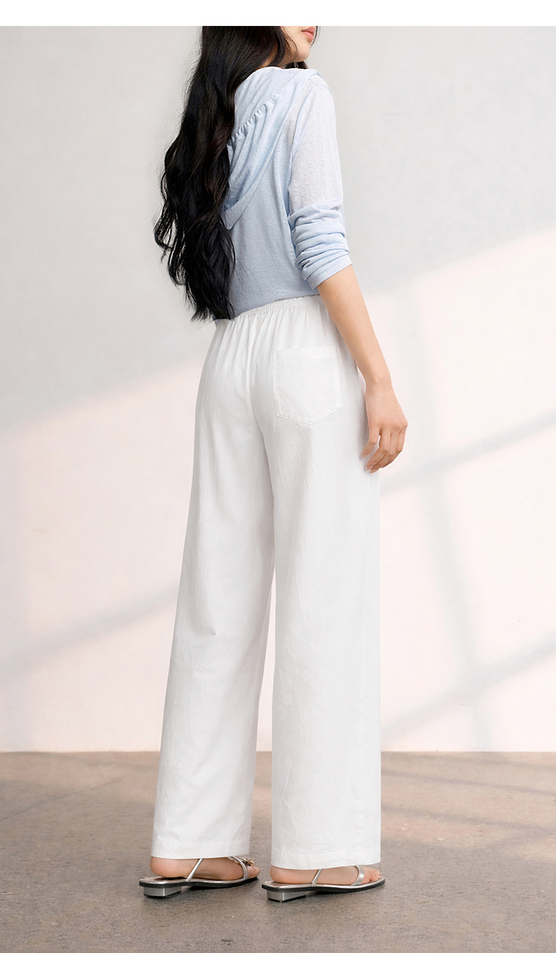 【100棉】三彩2026春季新款高腰休闲长裤空气裤小白裤宽松气球裤M