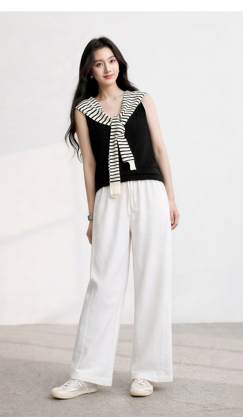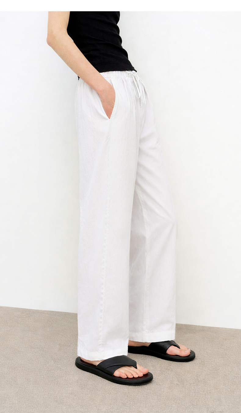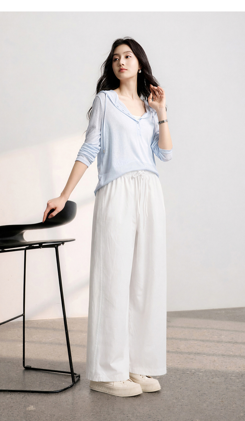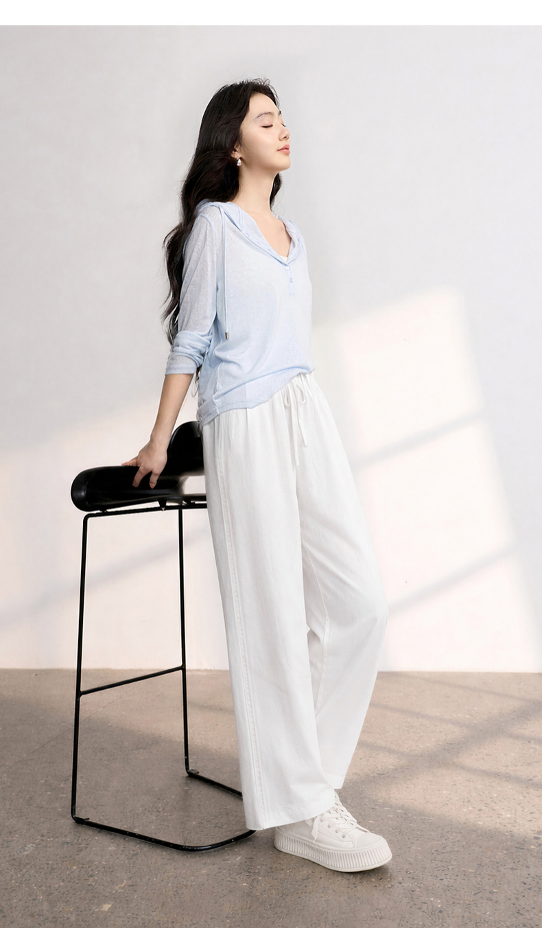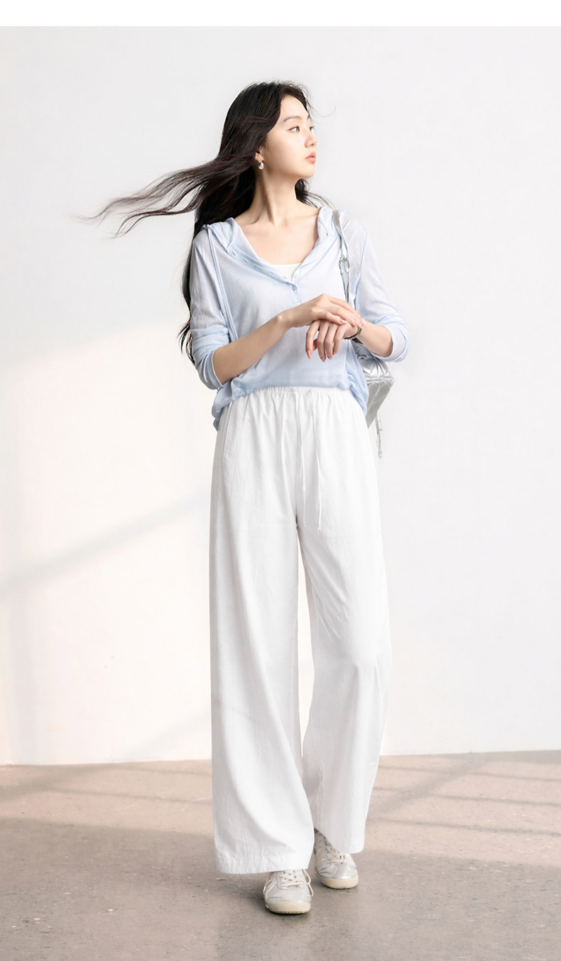 【100棉】三彩2026春季新款高腰休闲长裤空气裤小白裤宽松气球裤M