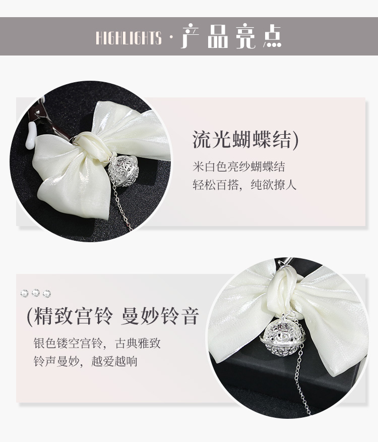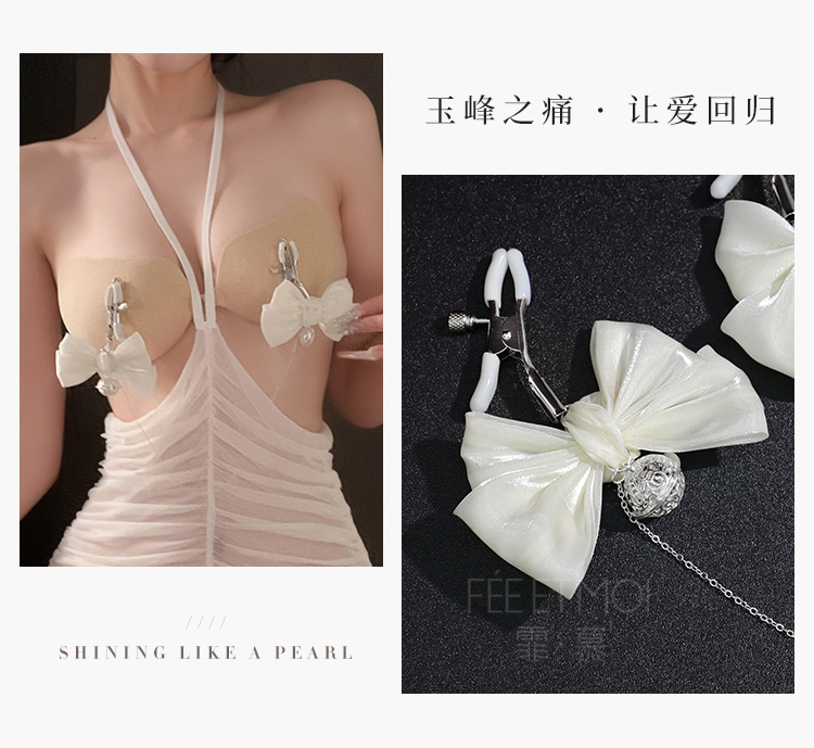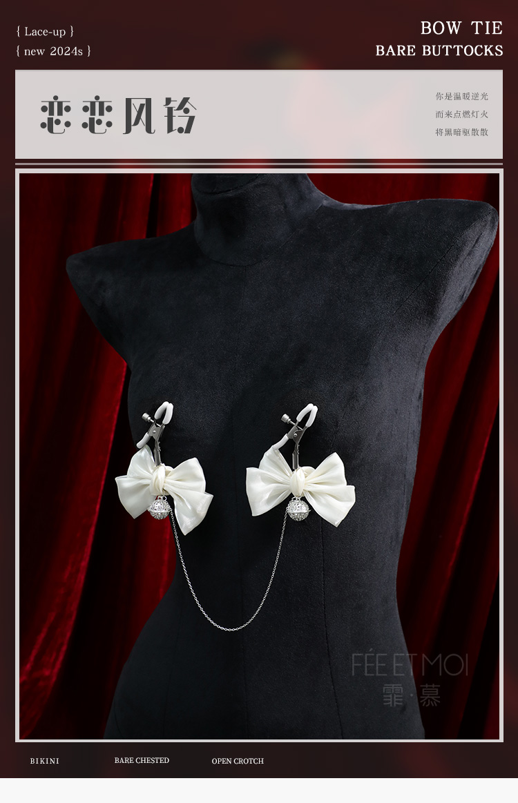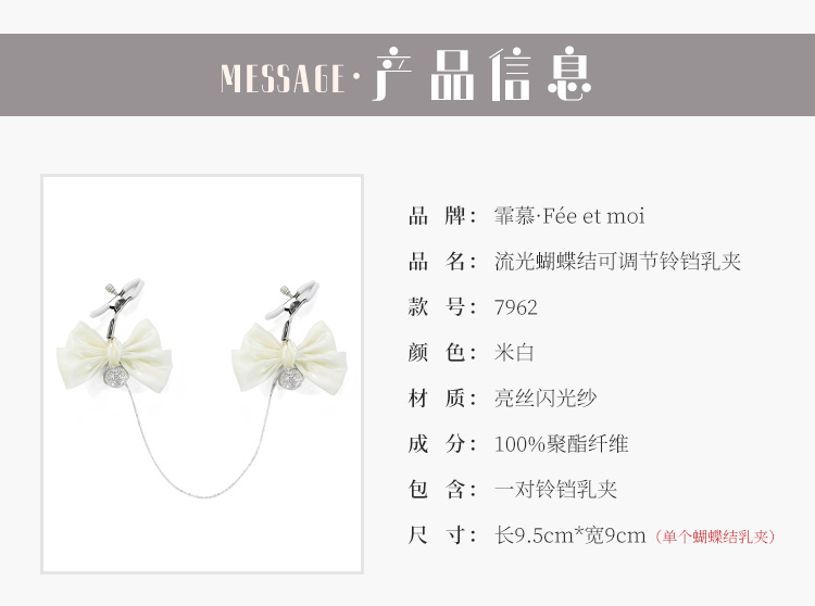 【情趣内衣】霏慕流光蝴蝶结可调节铃铛乳夹7692