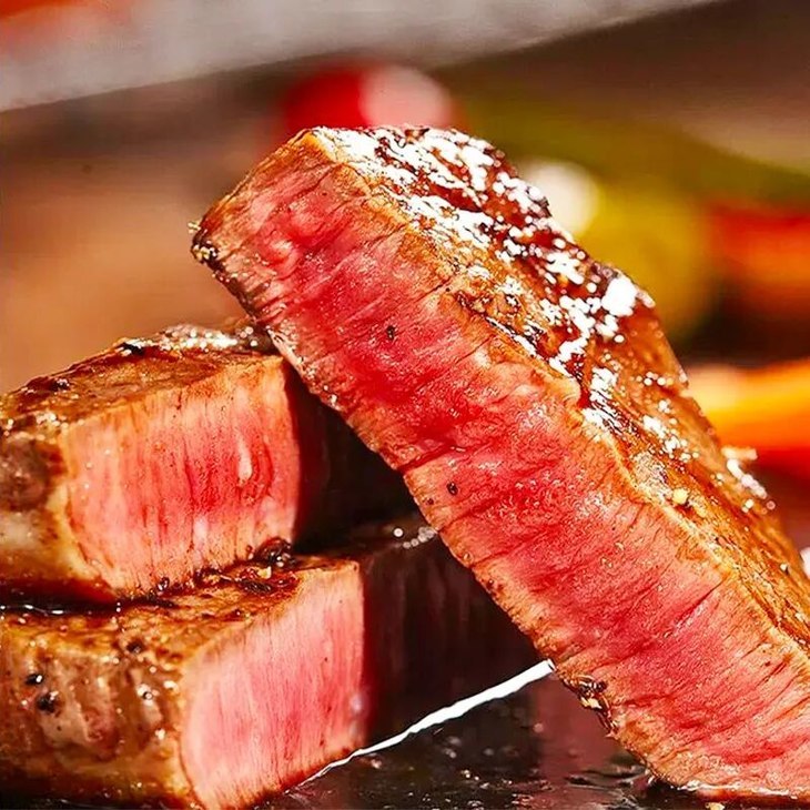 便可体验到细密油花融化产生的丰沛汁水、煎烧带来的焦香及牛肉本身的软嫩口感