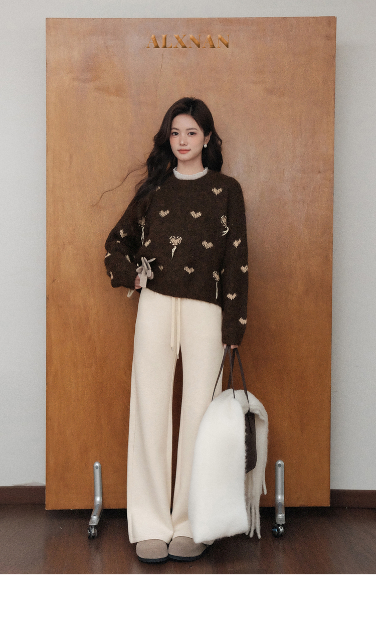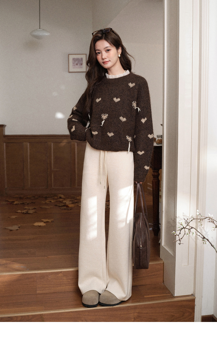 鹿向南「情书未封」米白色直筒休闲裤女秋季显瘦垂感宽松显瘦长裤