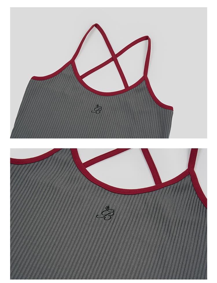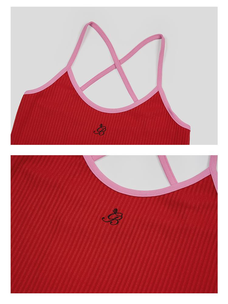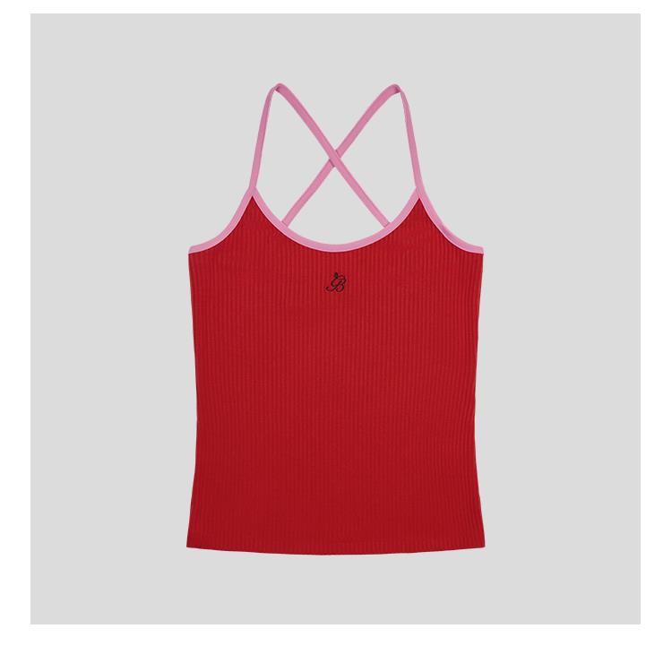 GOODBAI GB logo刺绣撞色针织交叉吊带背心