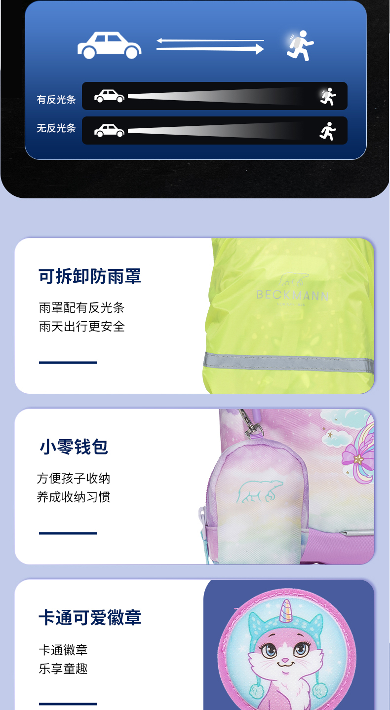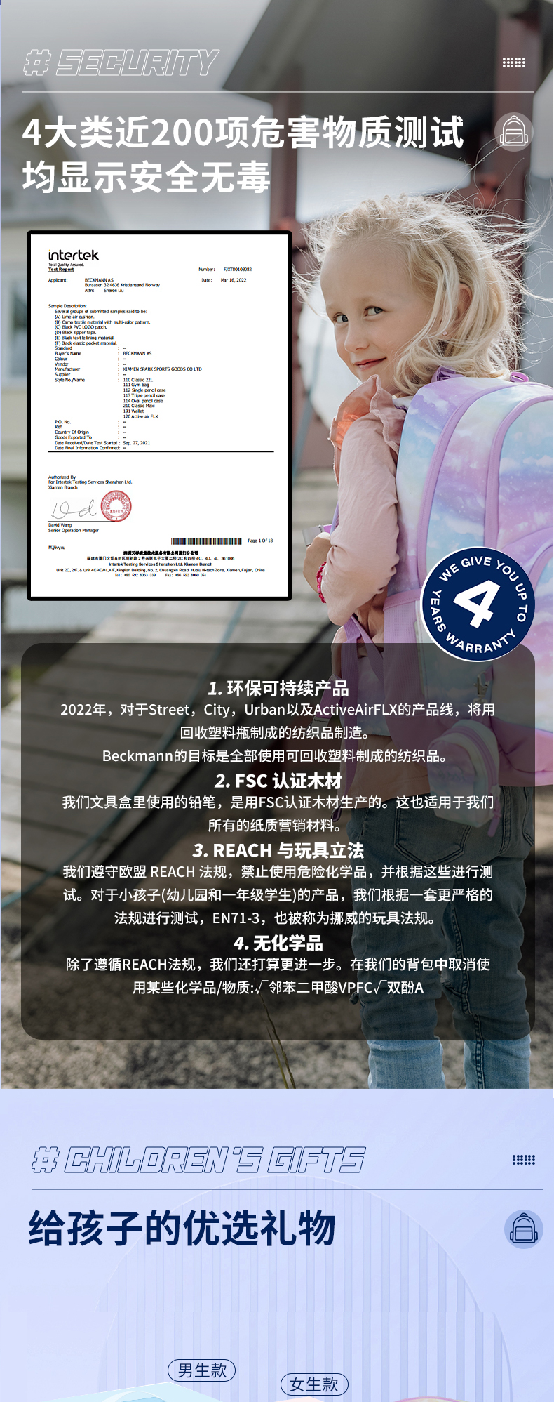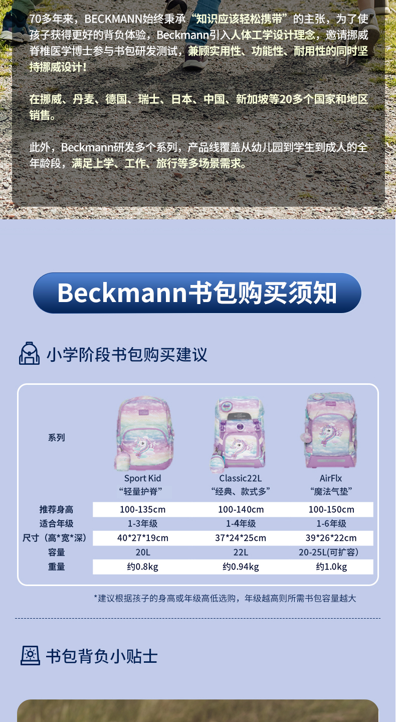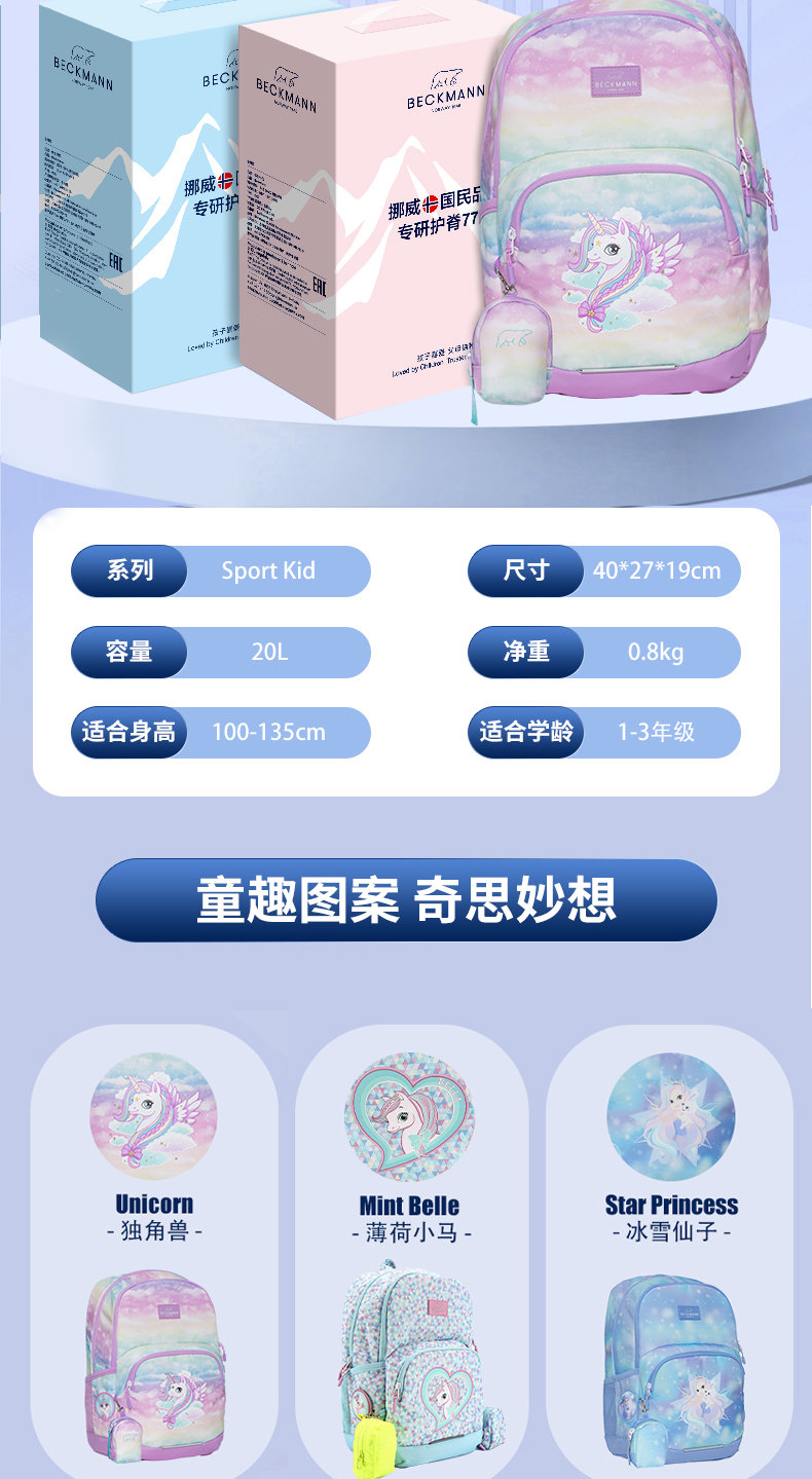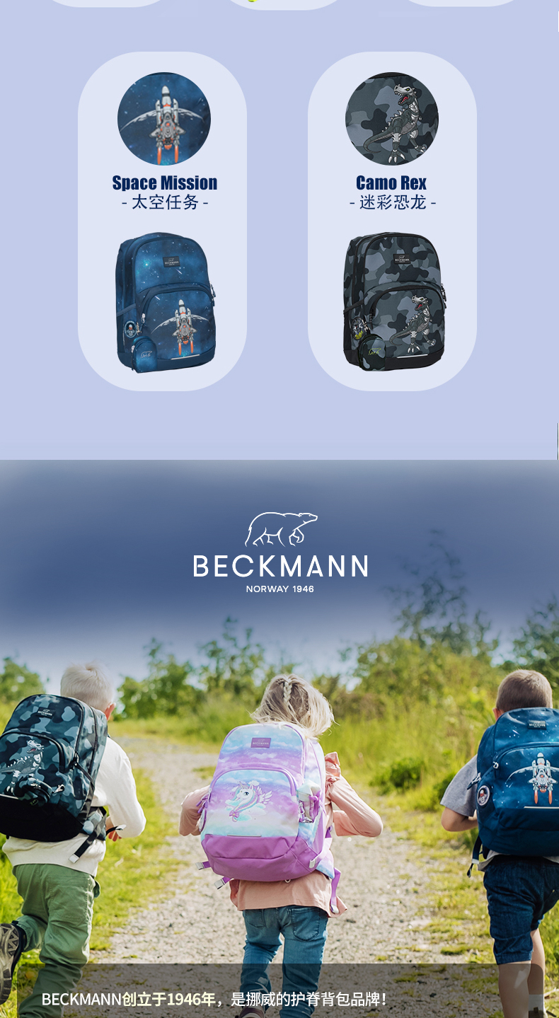 挪威beckmann贝克曼儿童背包女男孩1-3年级小学生减负护脊书包送同款笔袋