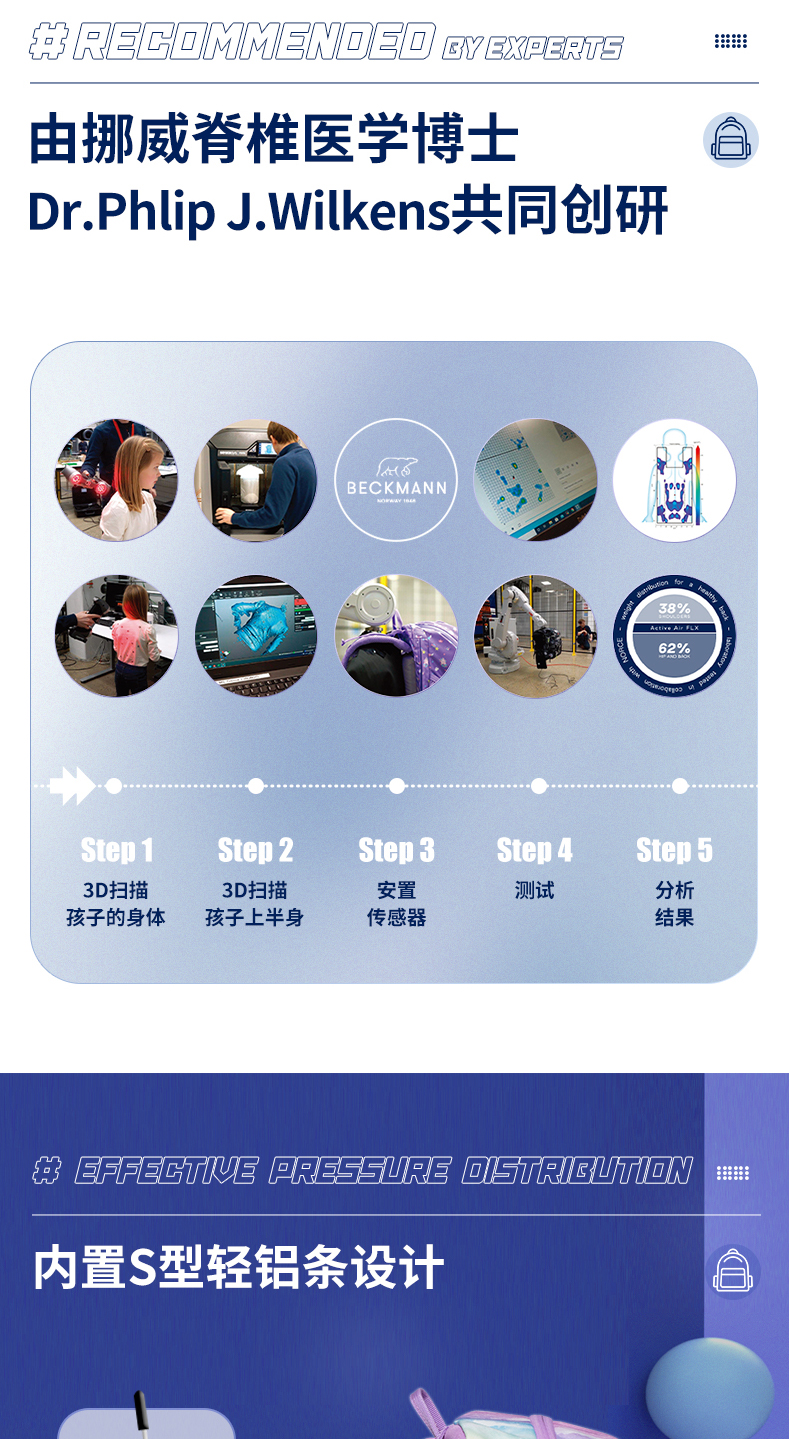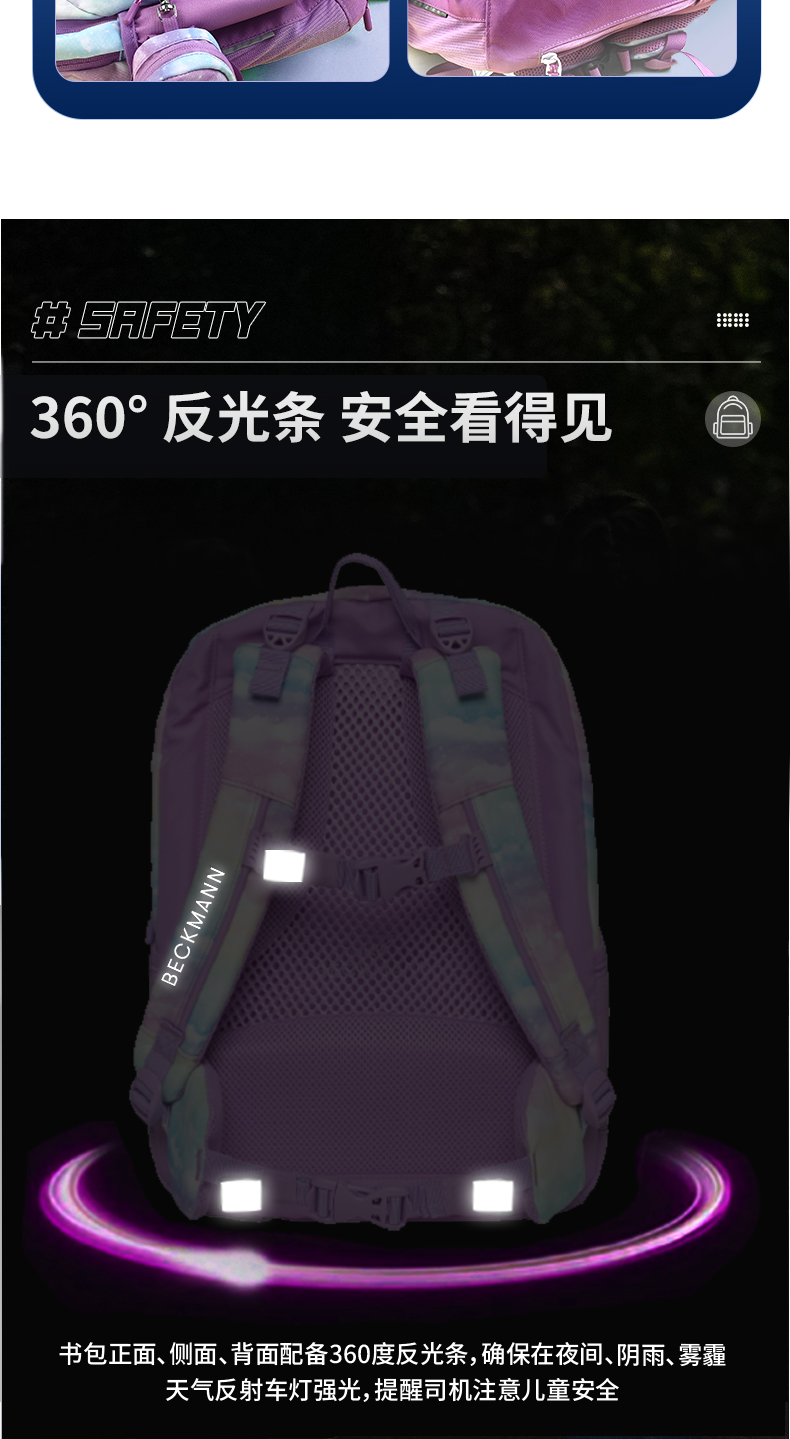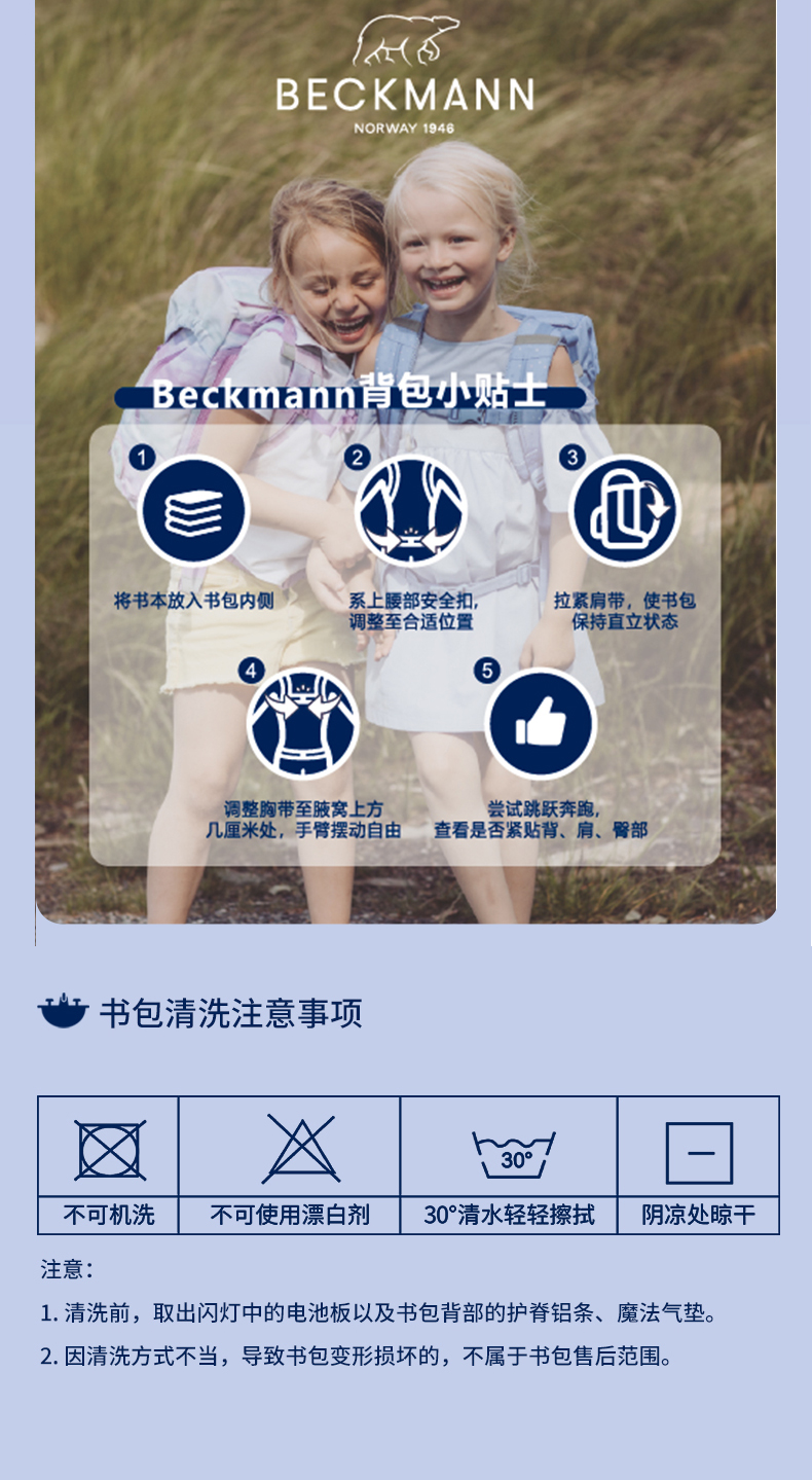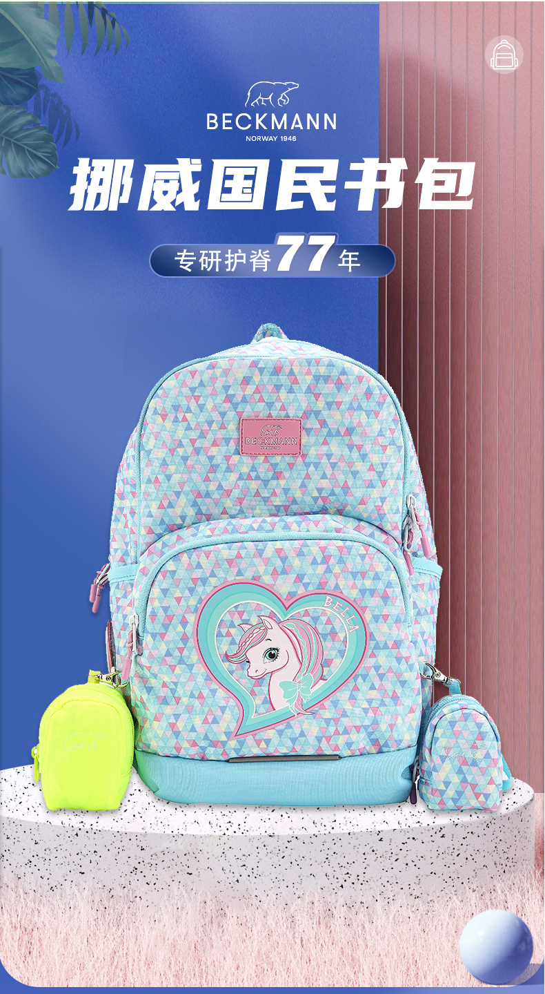挪威beckmann贝克曼儿童背包女男孩1-3年级小学生减负护脊书包(送同款笔袋)