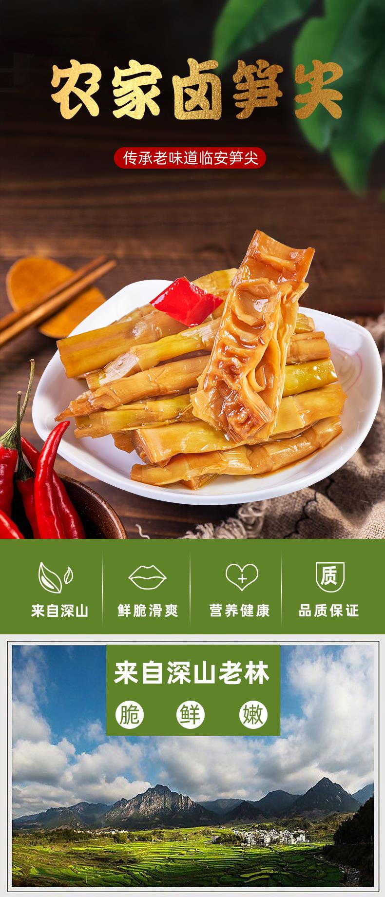 【传统农家老味道的卤笋尖】临安美食,选用嫩笋尖和菜籽油炒制,以农家土法酱油、干辣椒等天然调料卤制,最大程度保留笋尖的鲜甜本味。