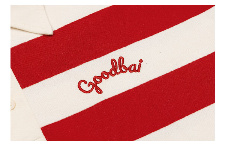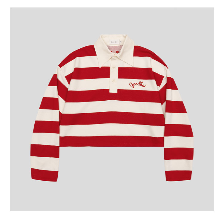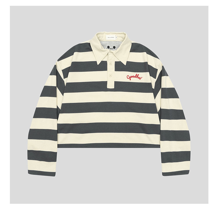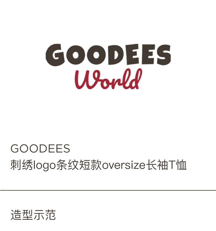 GOODBAI GOODEES刺绣logo条纹短款oversize长袖T恤