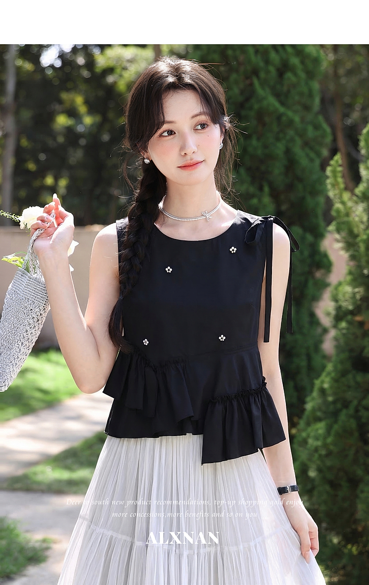 鹿向南【0328/20:00新品前1小时5折限量100件】黑色吊带背心上衣