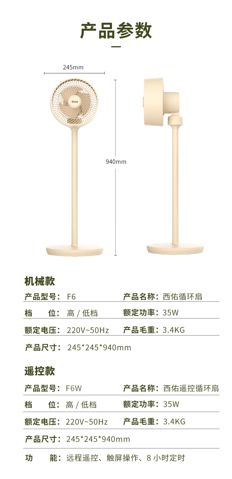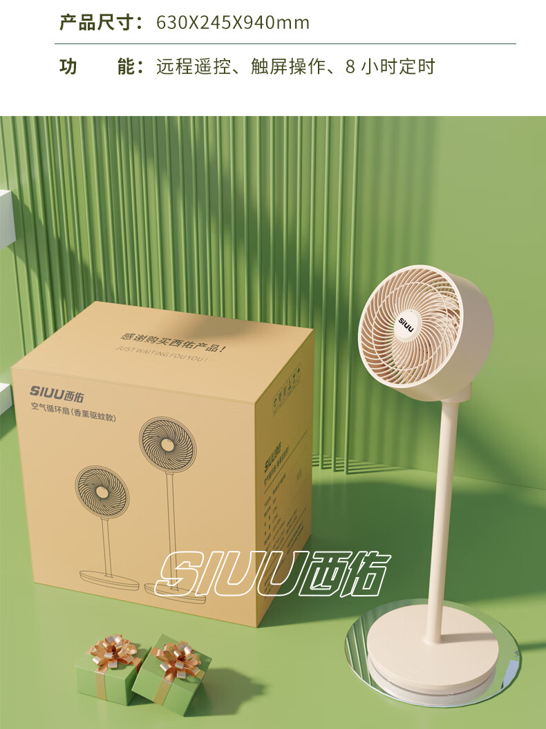 西佑SIUU空气循环扇落地扇可拆卸立式风扇香薰驱蚊F6机械款 F6W遥控款【工厂直发、一手货源】