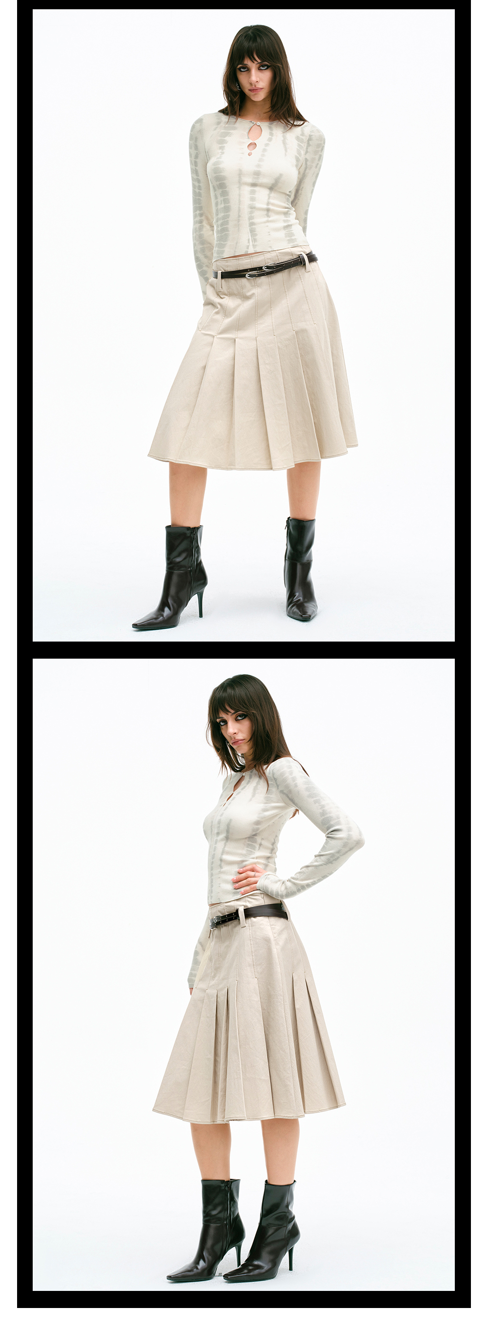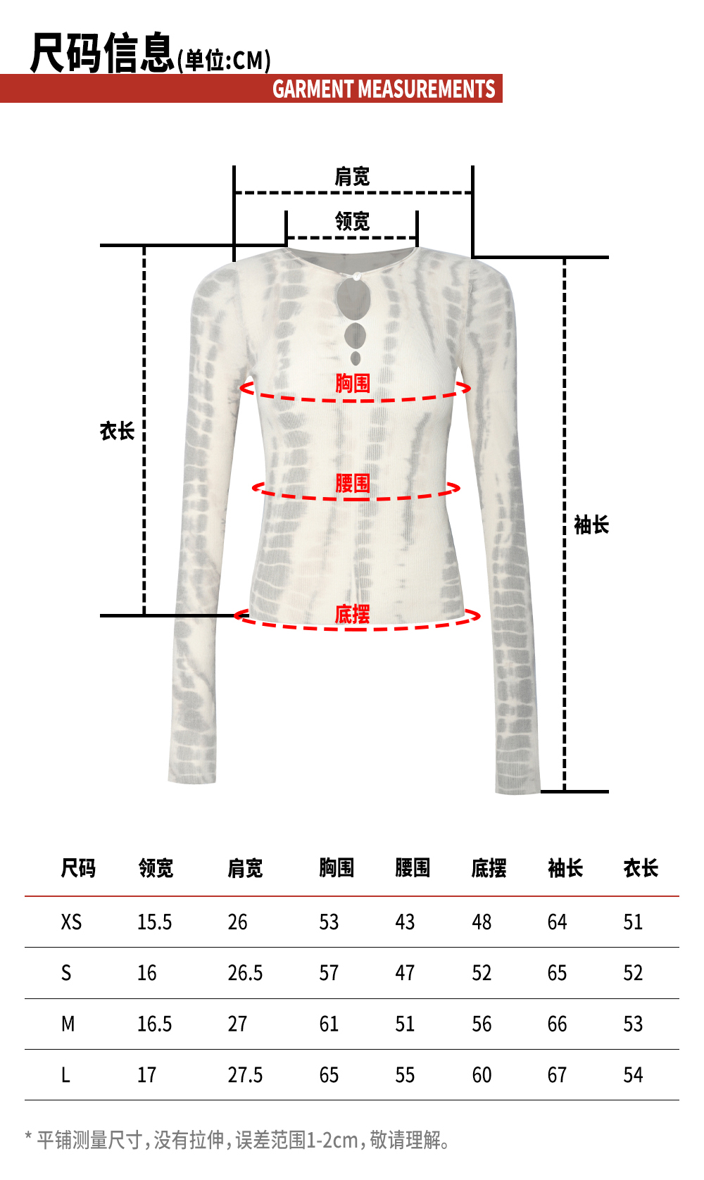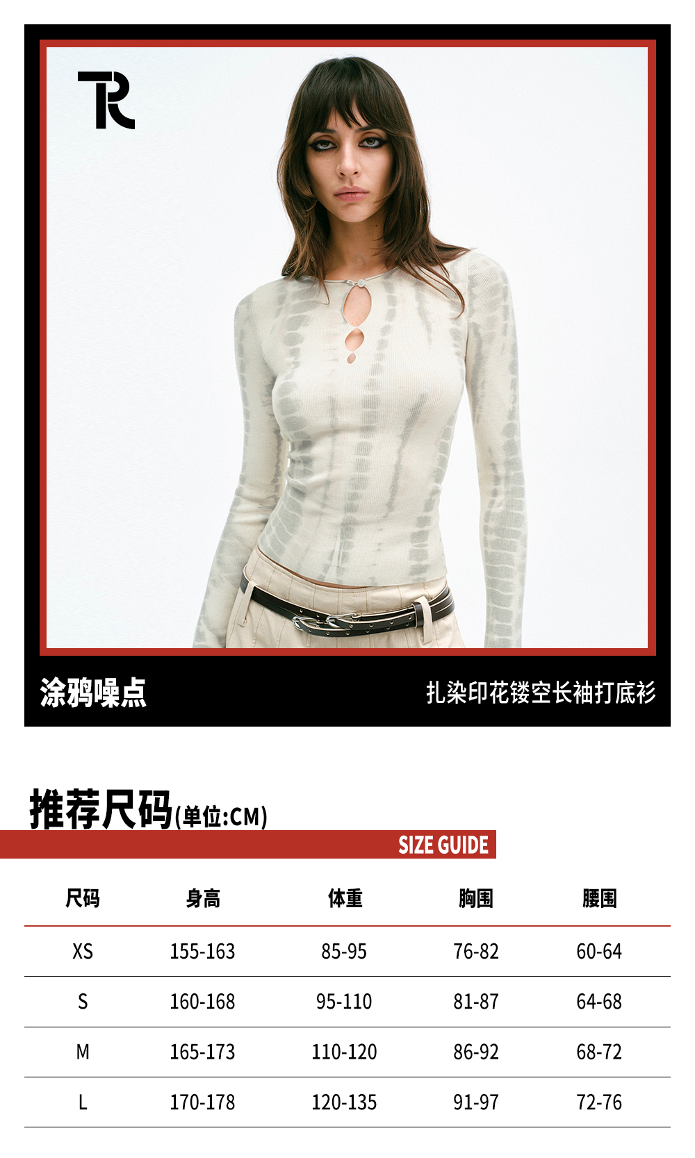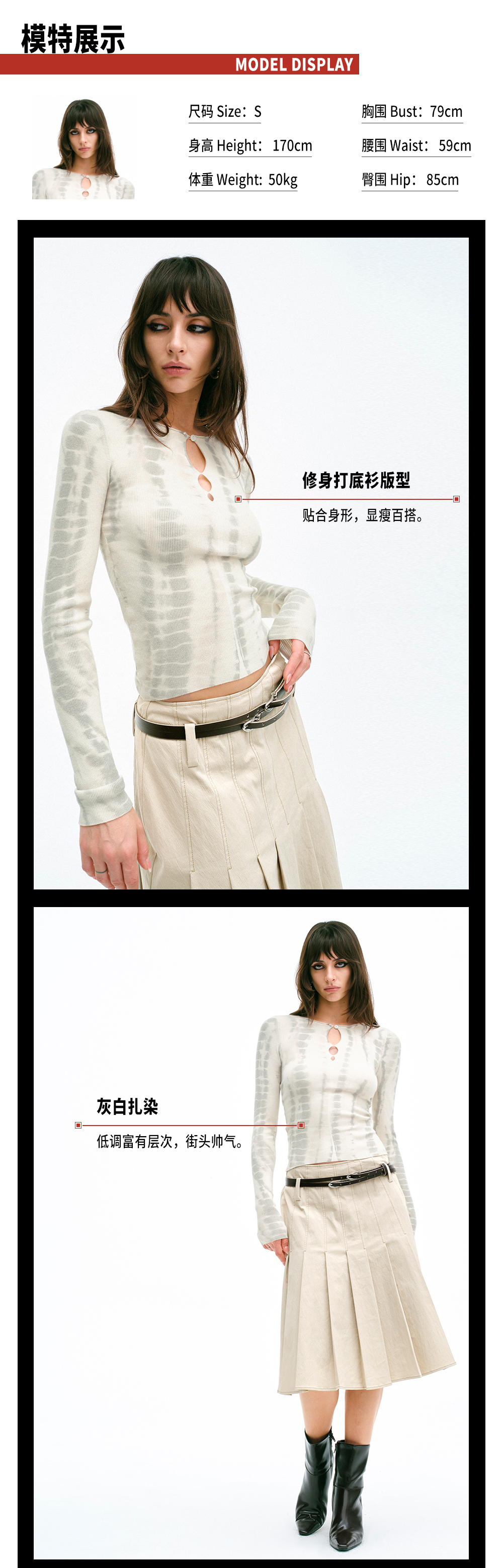 TR她热 涂鸦噪点 灰白扎染印花街头镂空设计感百搭修身打底衫上衣