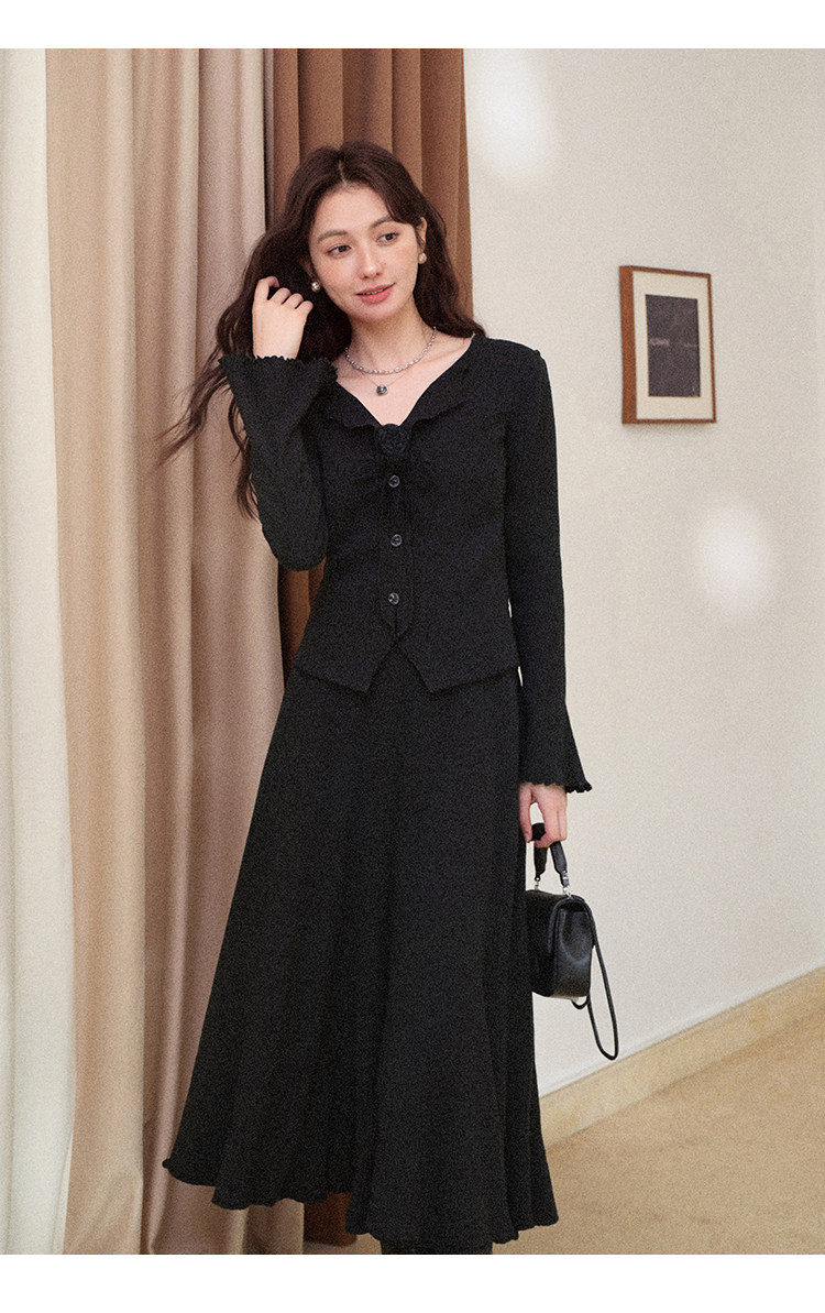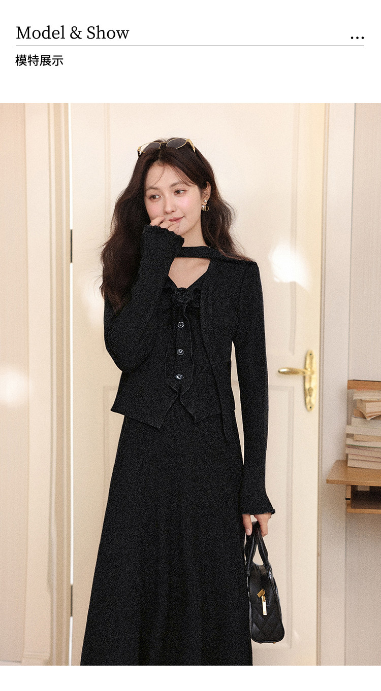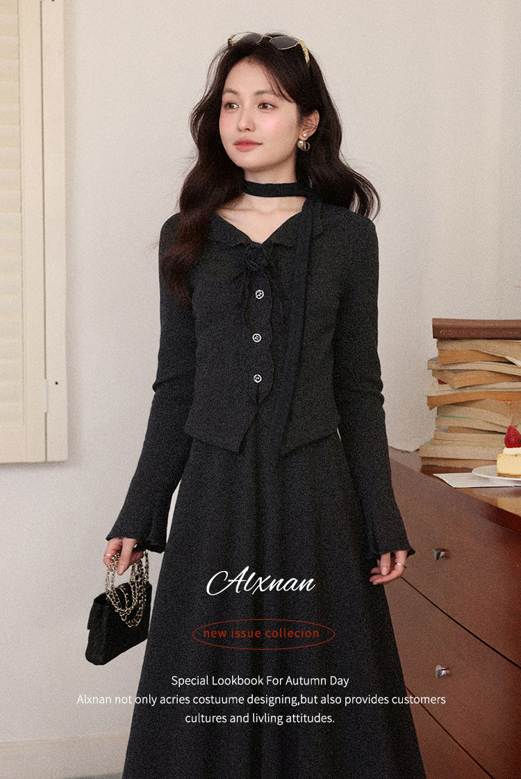 鹿向南「慵懒灰调」假两件气质高级感女秋冬新款巨好看内搭连衣裙