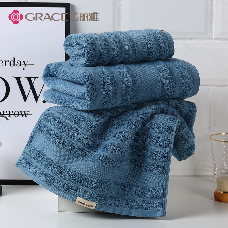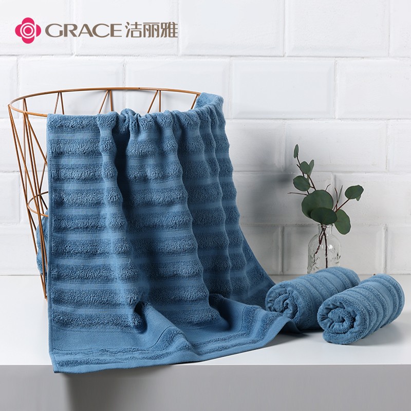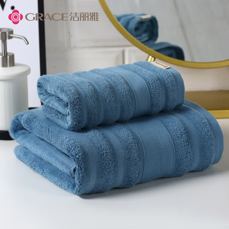 洁丽雅 Grace纯棉男女冬季吸水速干成人家用全棉毛巾大裹巾两件套 1浴巾+1毛巾 (颜色随机)