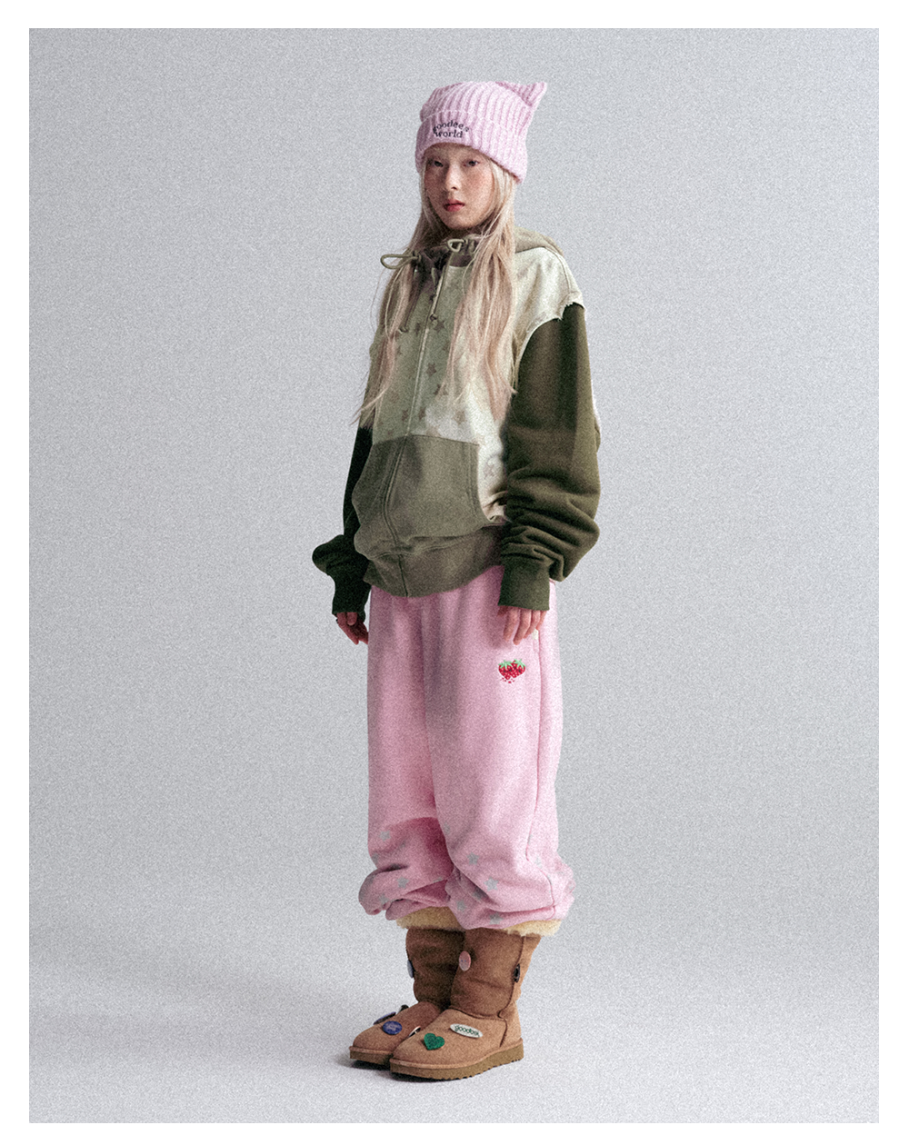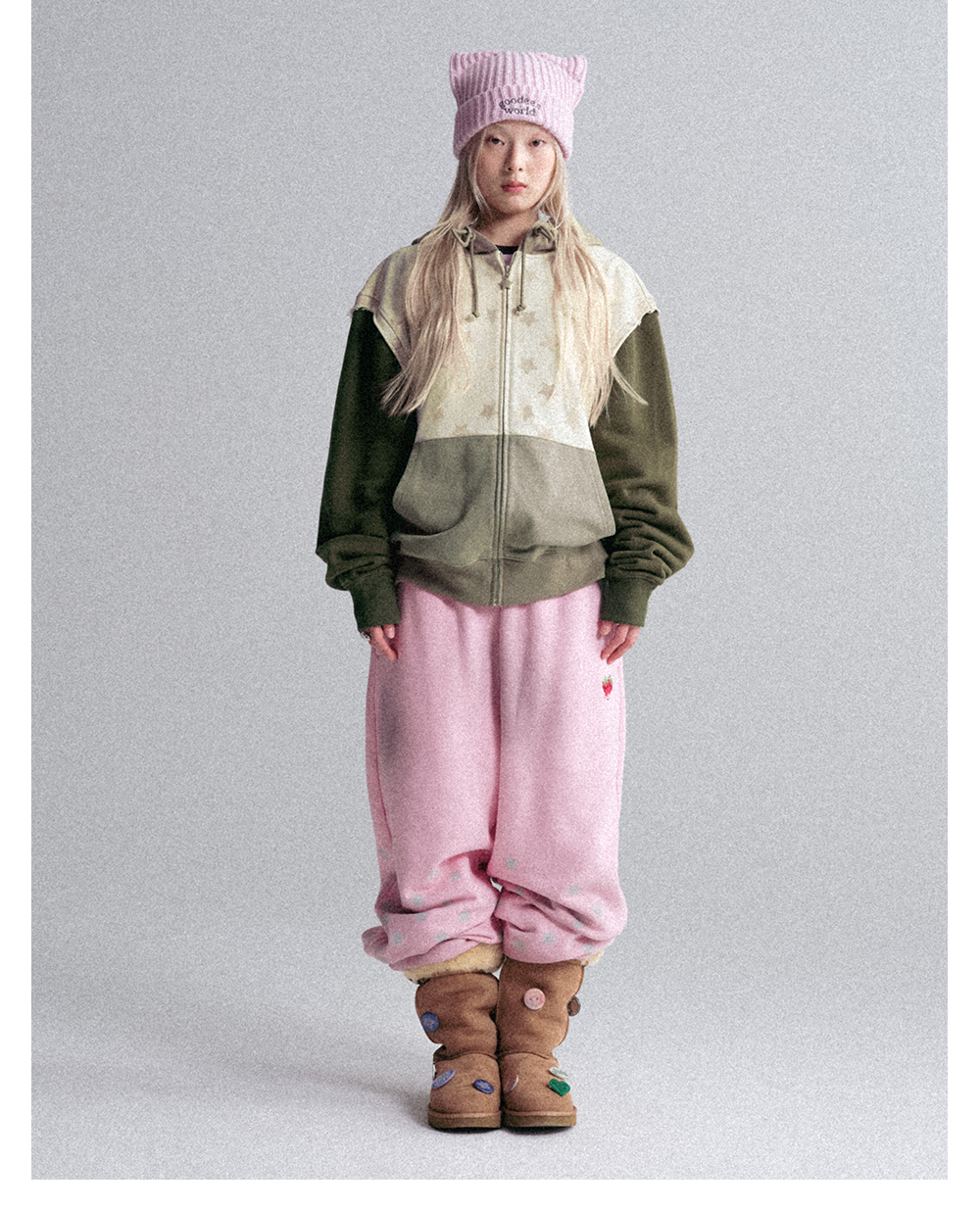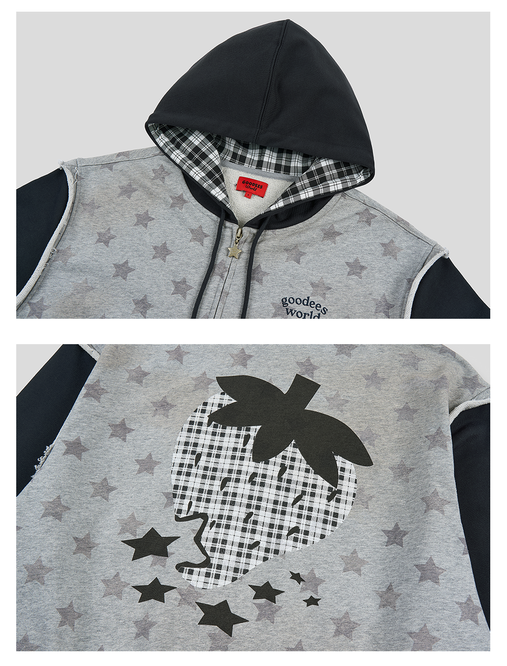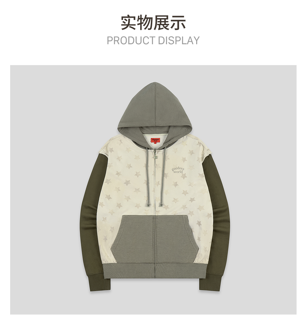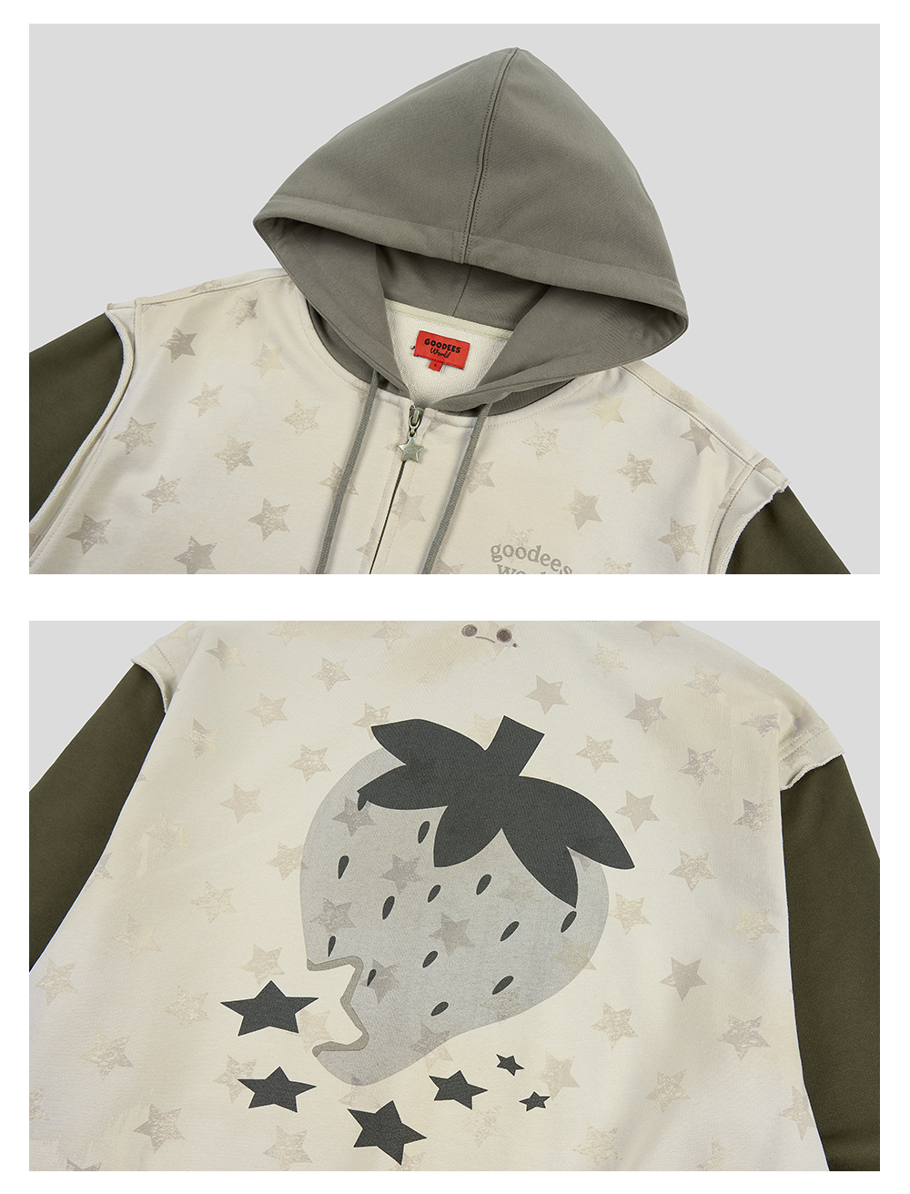 GOODBAI GOODEES 新款个性撞色草莓拼接连帽卫衣夹克外套