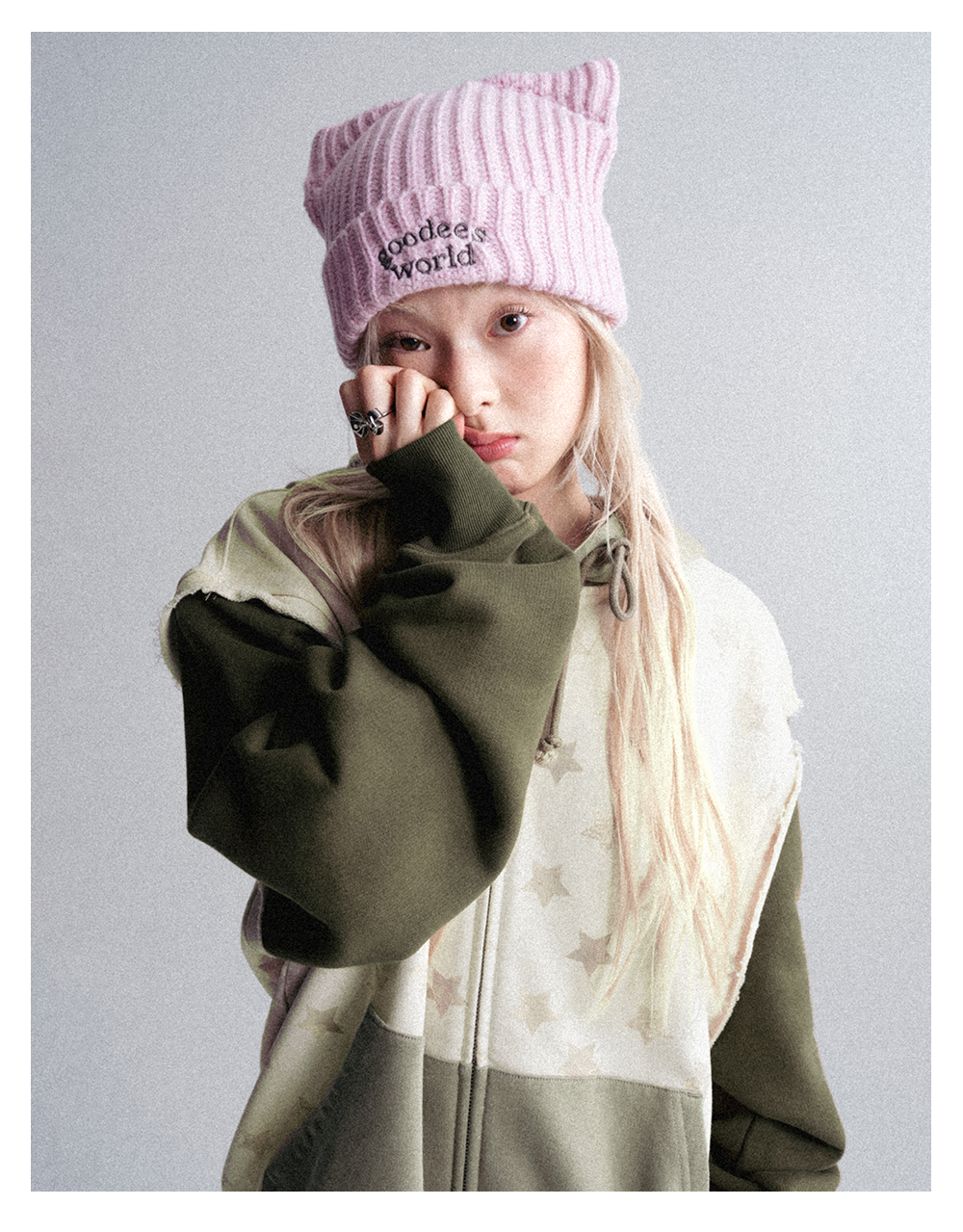 GOODBAI GOODEES 新款趣味猫耳帽蝴蝶结拉链针织衫外套上衣