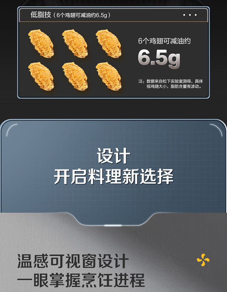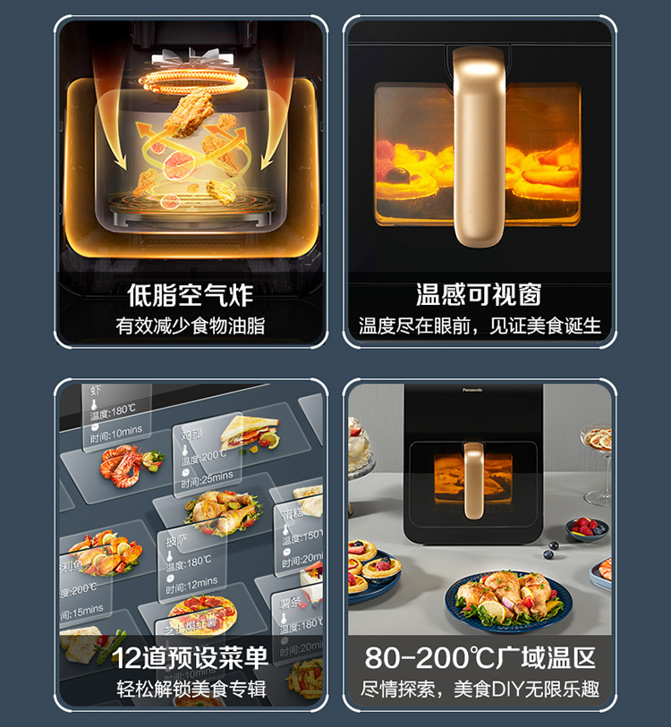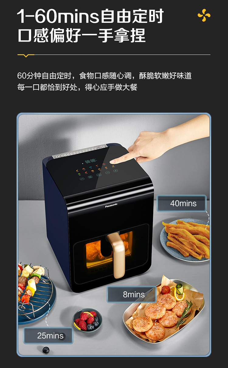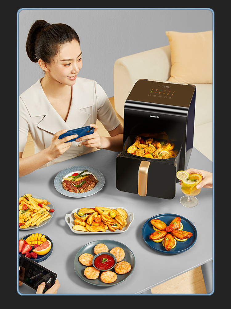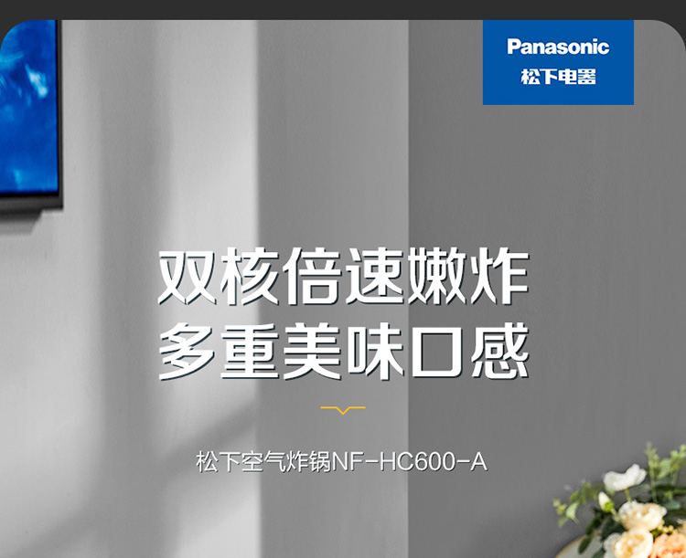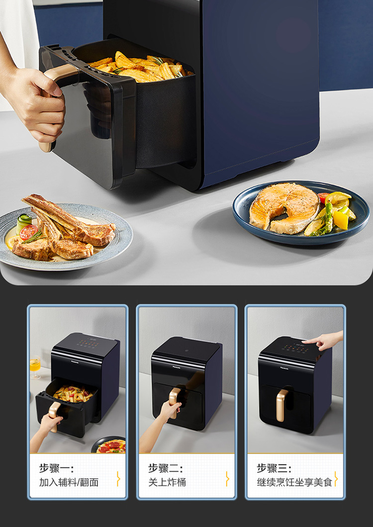 松下(Panasonic)多功能全程可视家用全自动无油6L大容量 无需翻面 空气炸锅 NF-HC600-A_qb