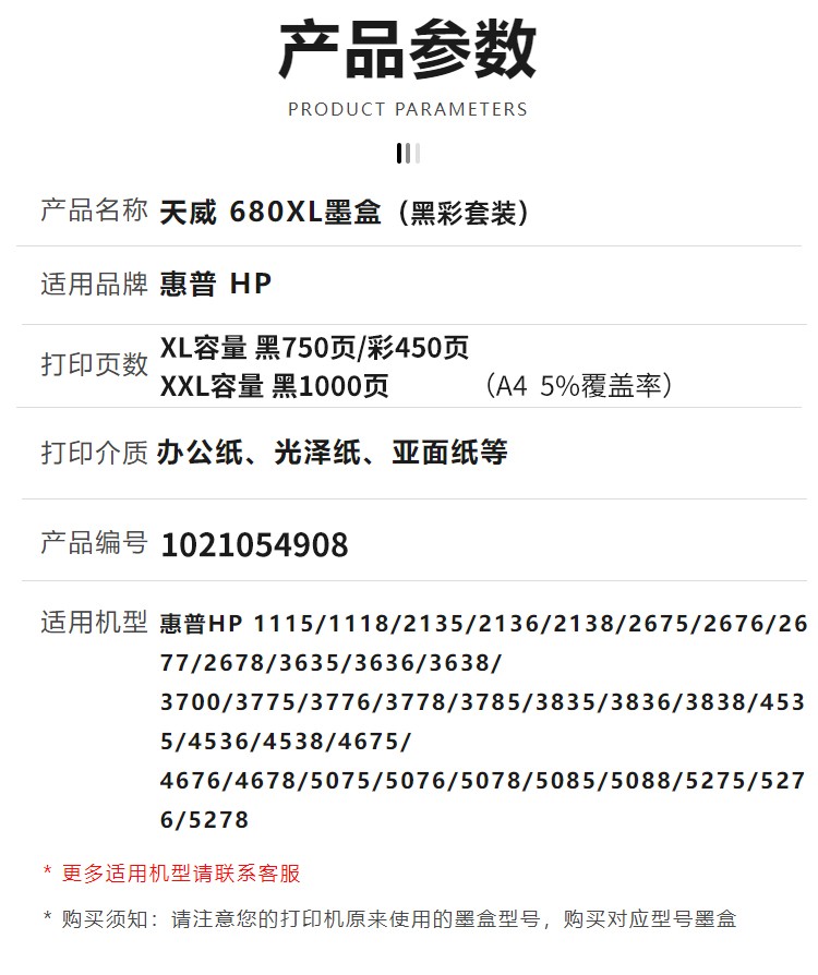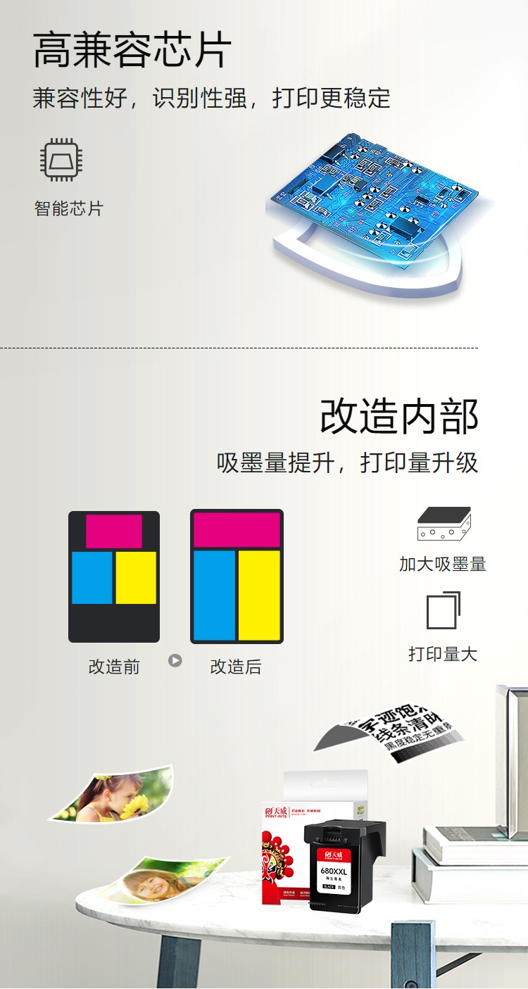 天威 680XXL黑色彩色墨盒套装 适用惠普HP2138 2677 3636 3638 3777 3778 3838 4538 4678打印机墨盒