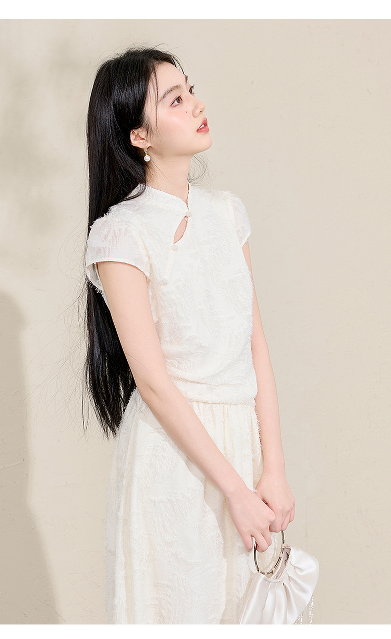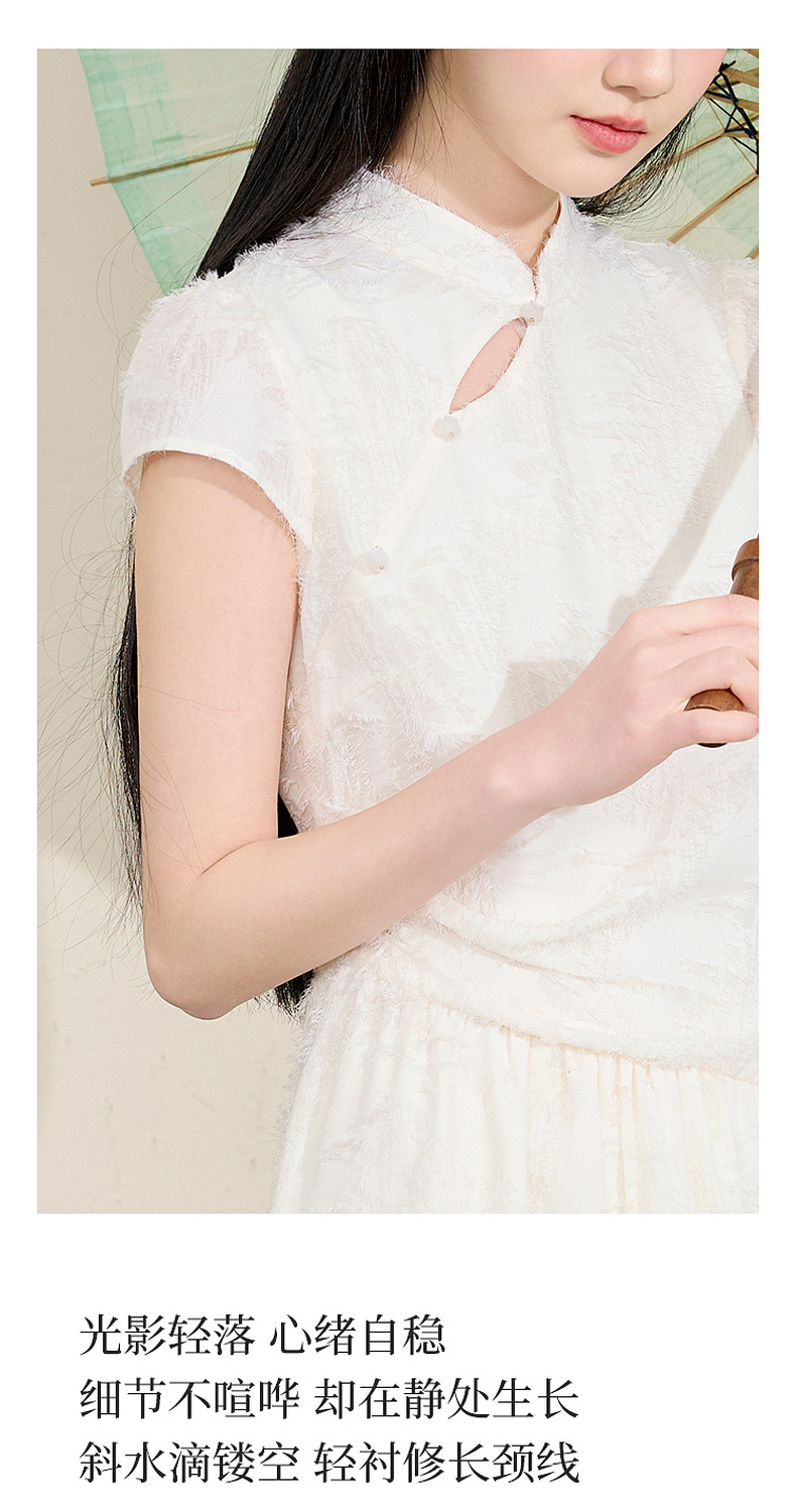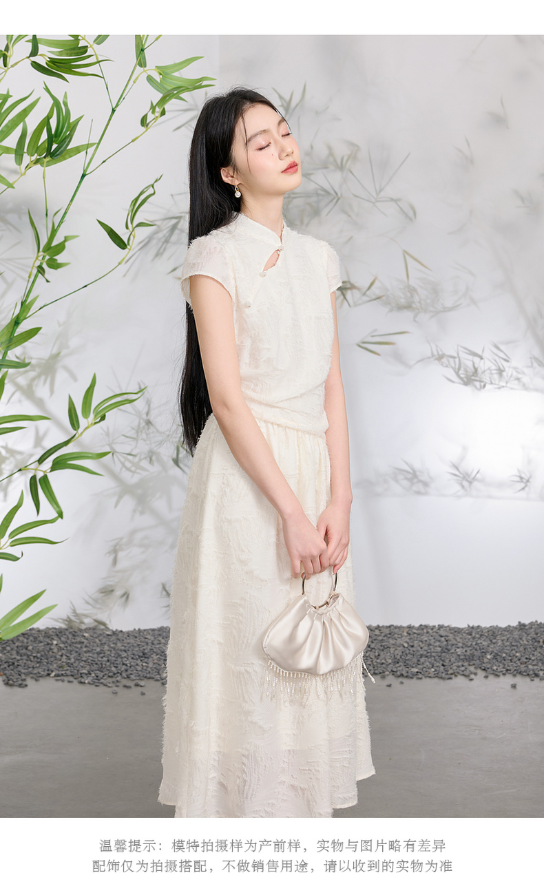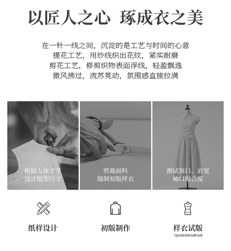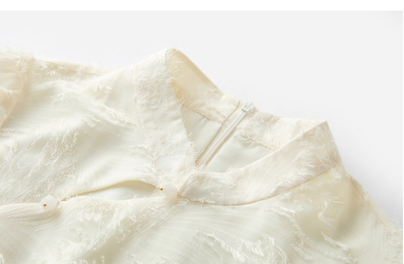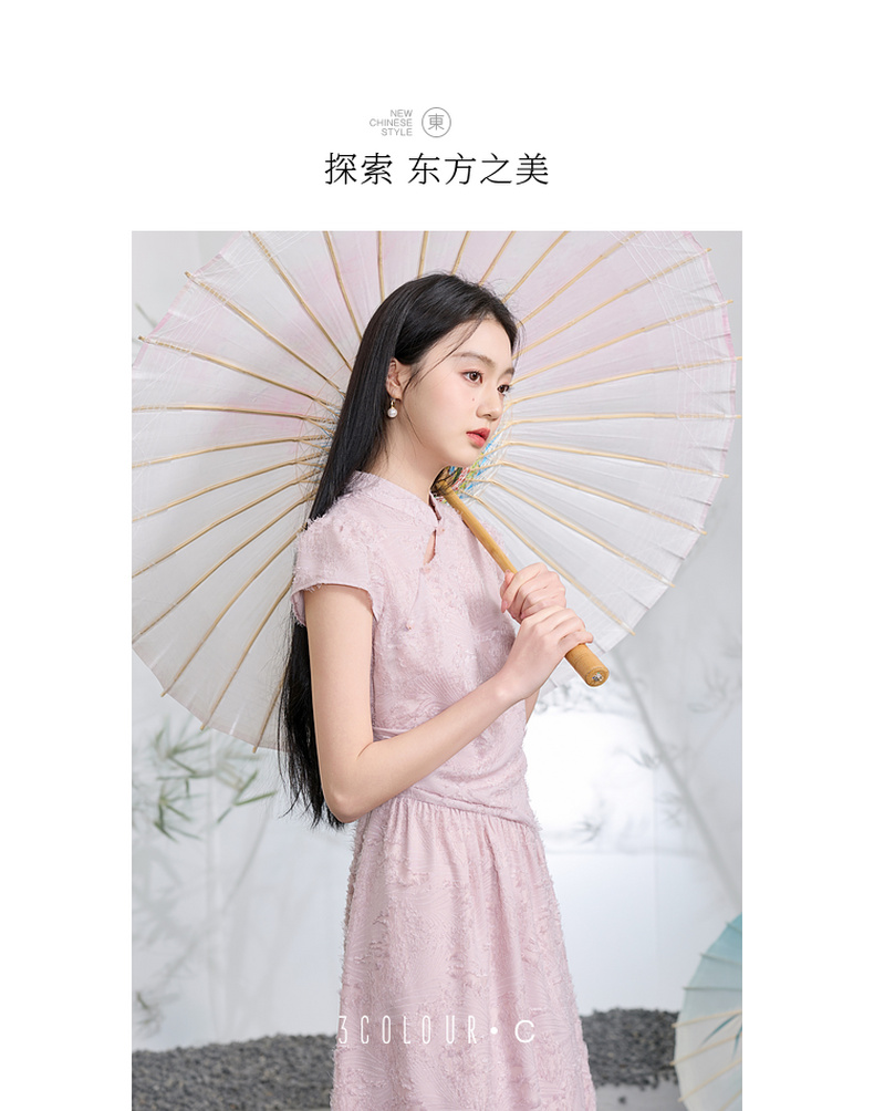 三彩【不染烟霞】2026春季新款剪花连衣裙短袖立领A字裙长裙C