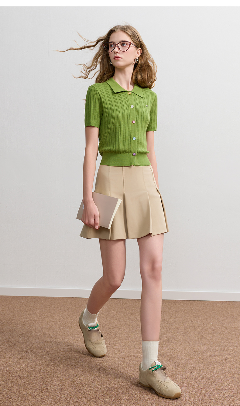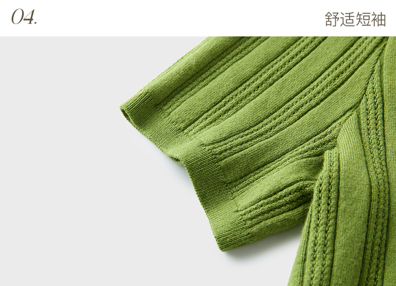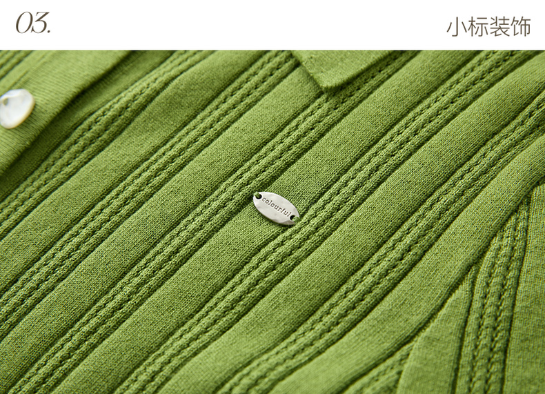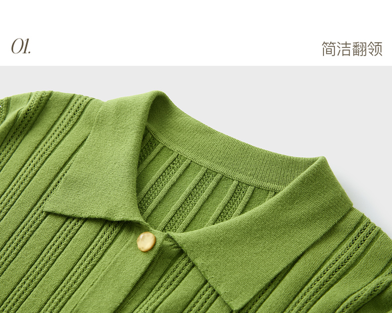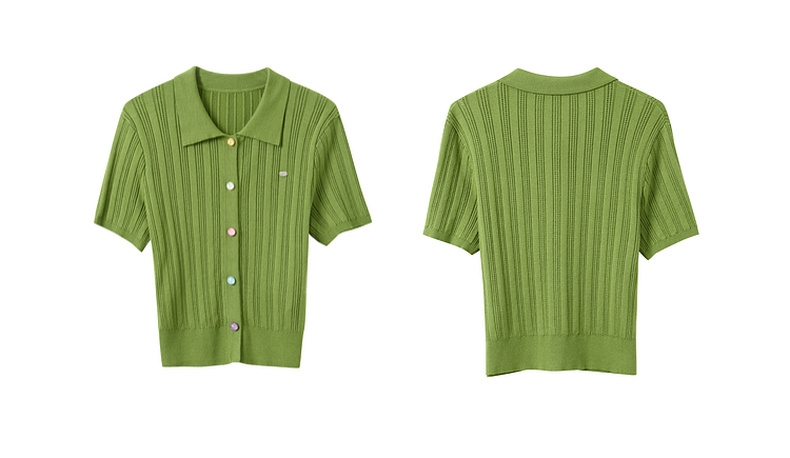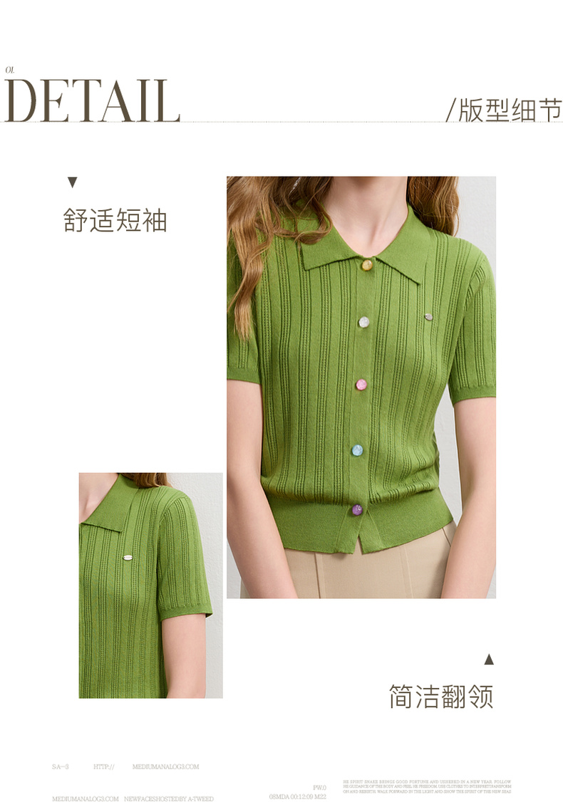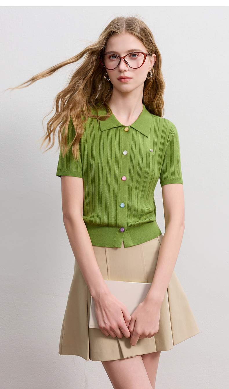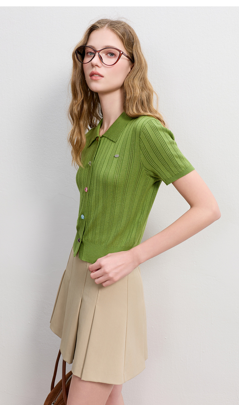 三彩2025秋季新款修身短款针织衫多巴胺翻领短袖上衣显瘦M