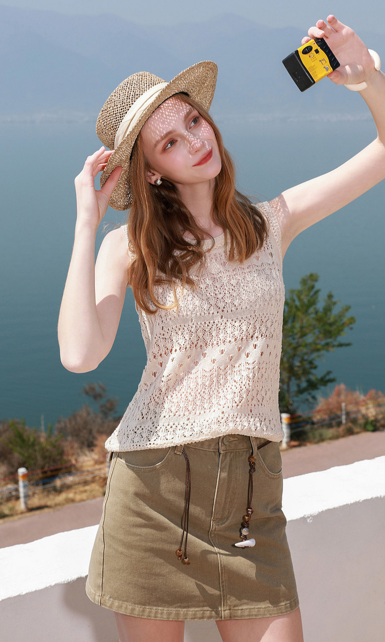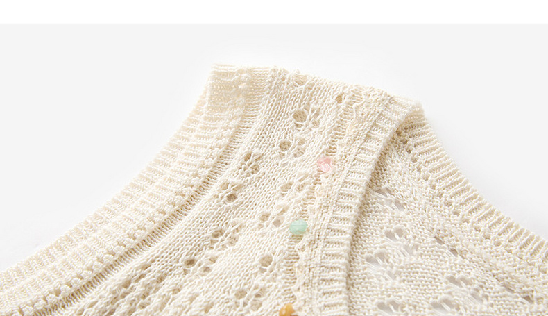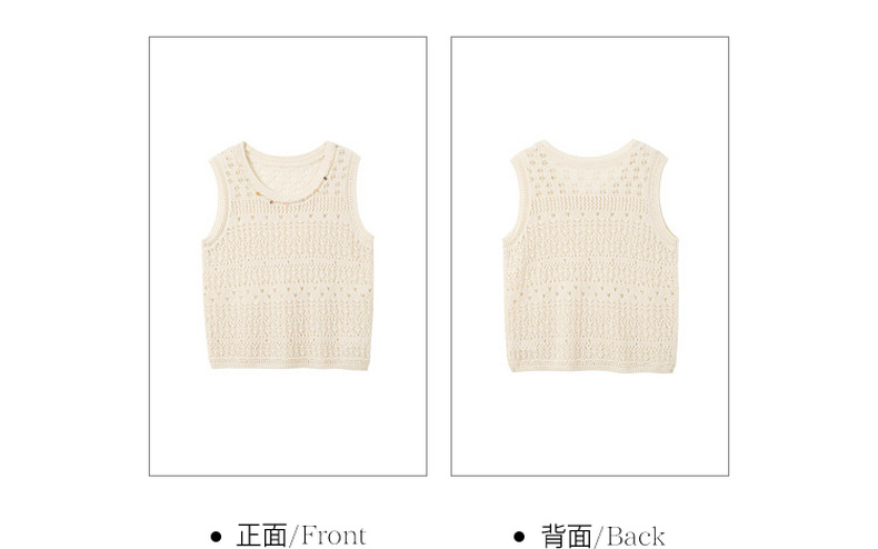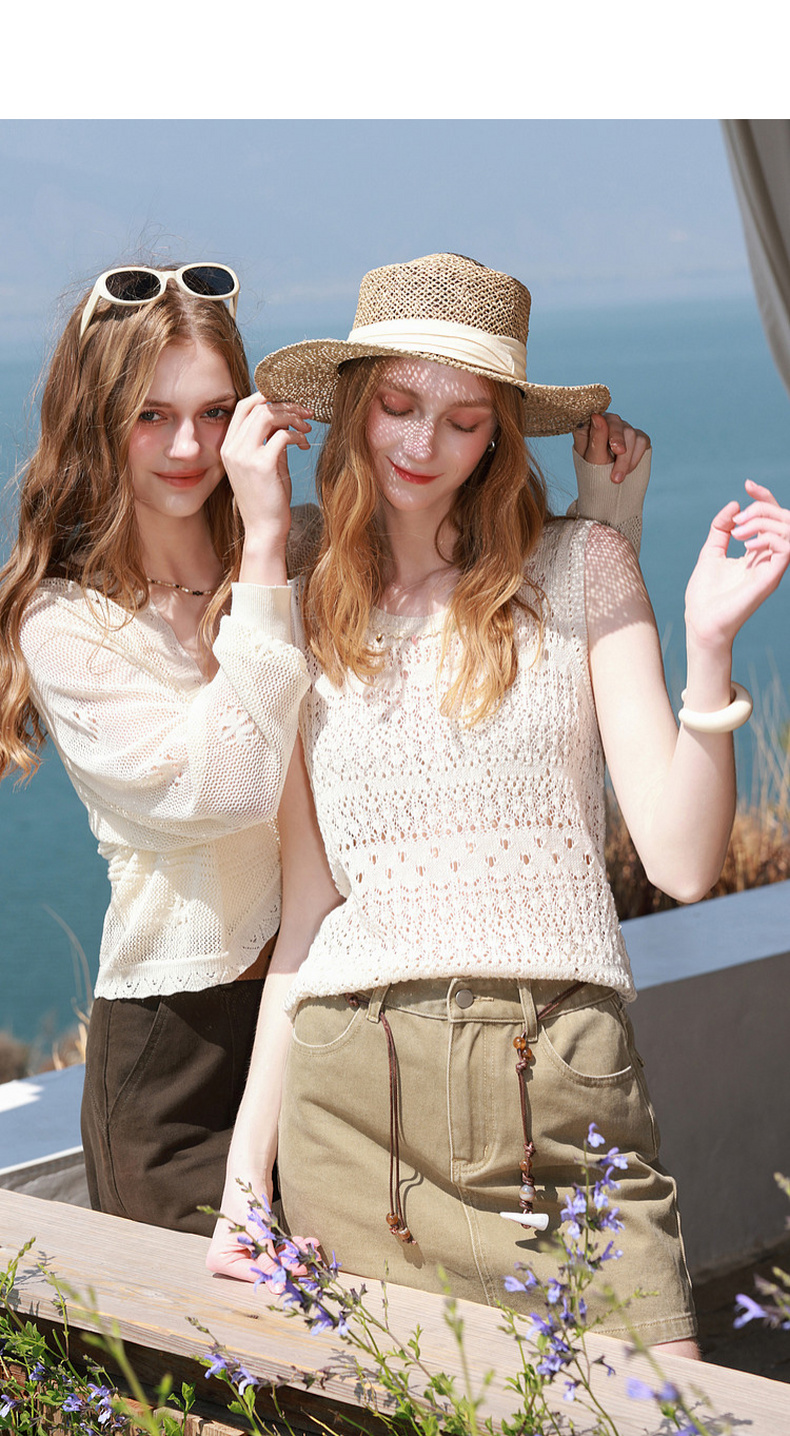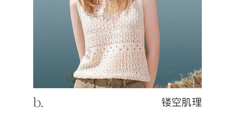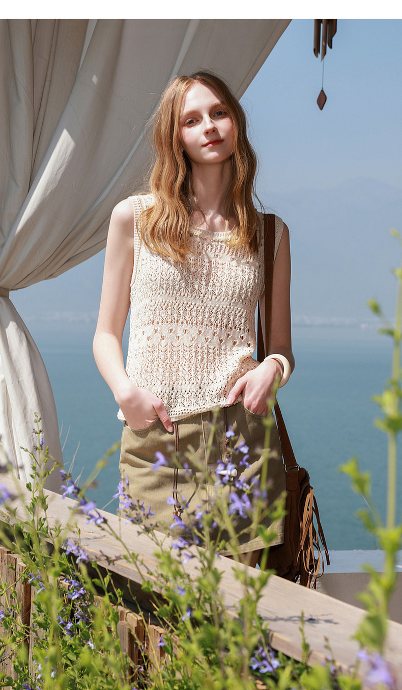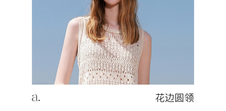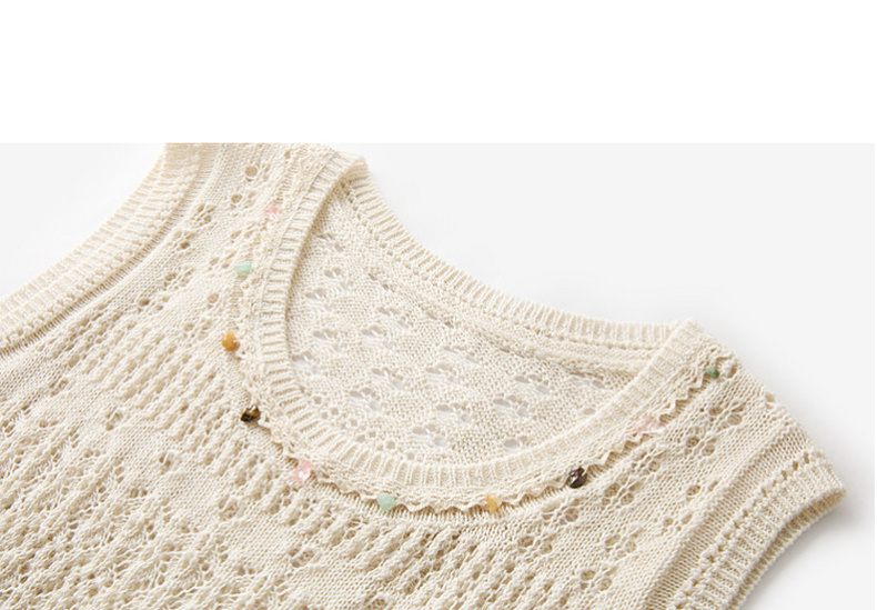 三彩2026夏季新款波西米亚镂空针织衫无袖毛衫圆领套头上衣M