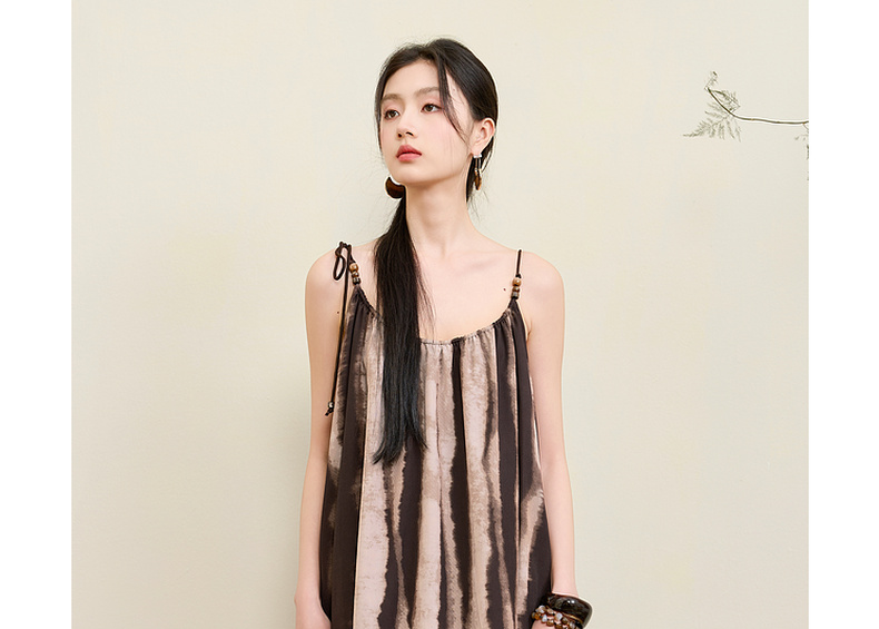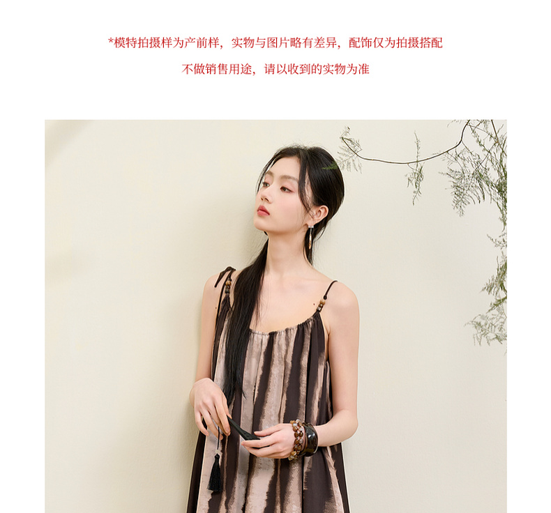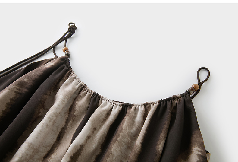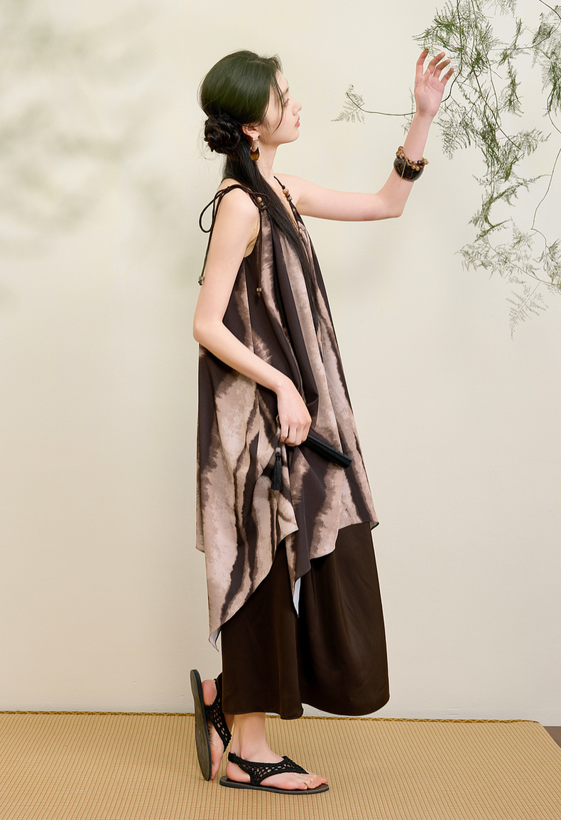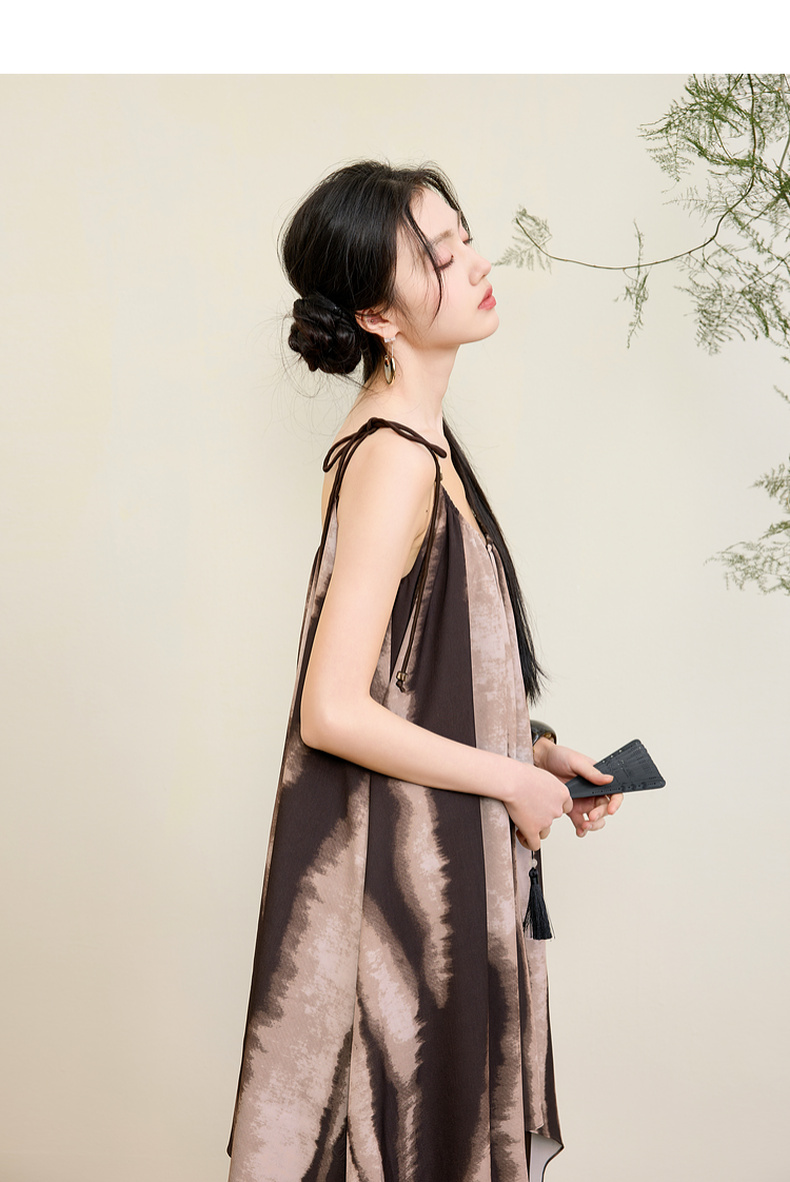 三彩【漆月流光】2025夏季新款新中式假两件吊带裙印花连衣裙C